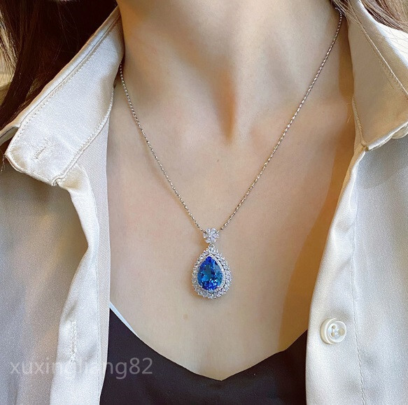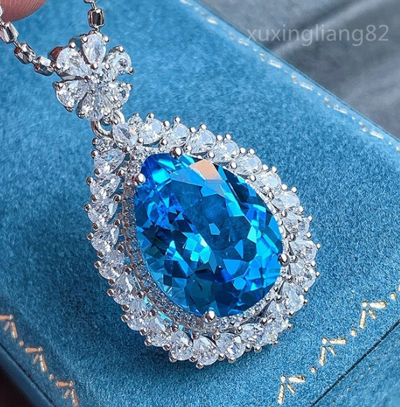 綺麗 極美 アクアマリン ペンダントトップ ネックレス 満々ジルコン 真の輝く チェーン無し アクセサリー