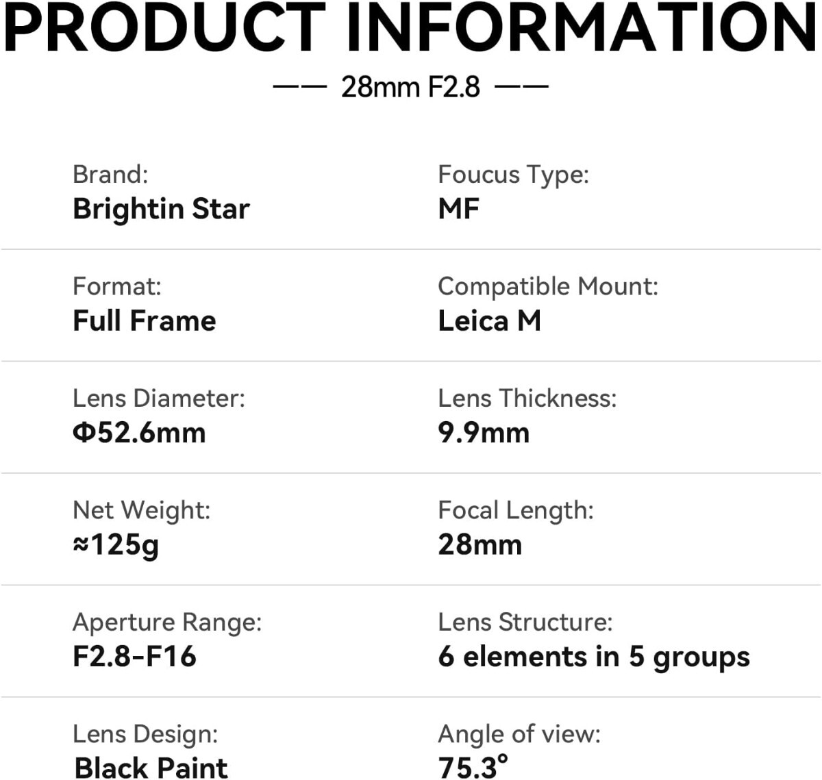 薄型のパンケーキレンズ、Brightin Star 28mm F2.8。