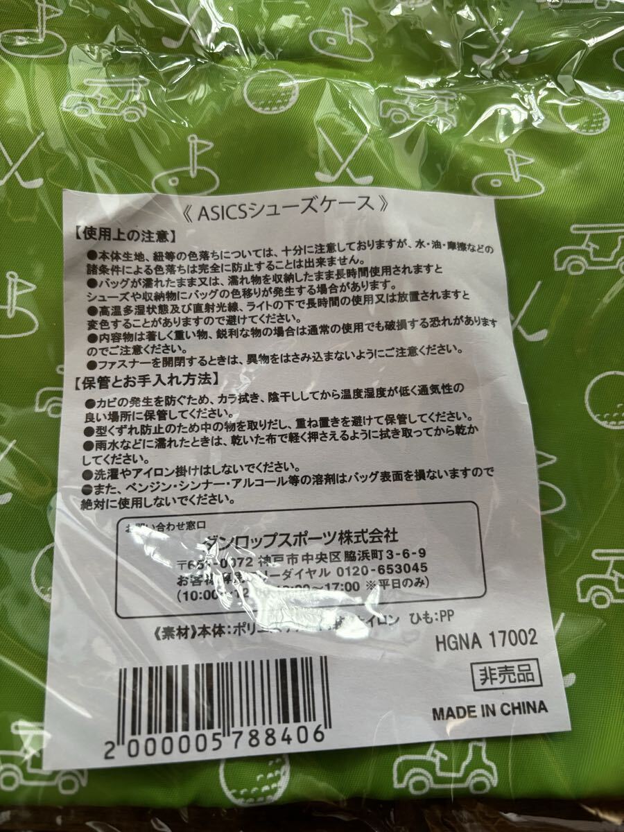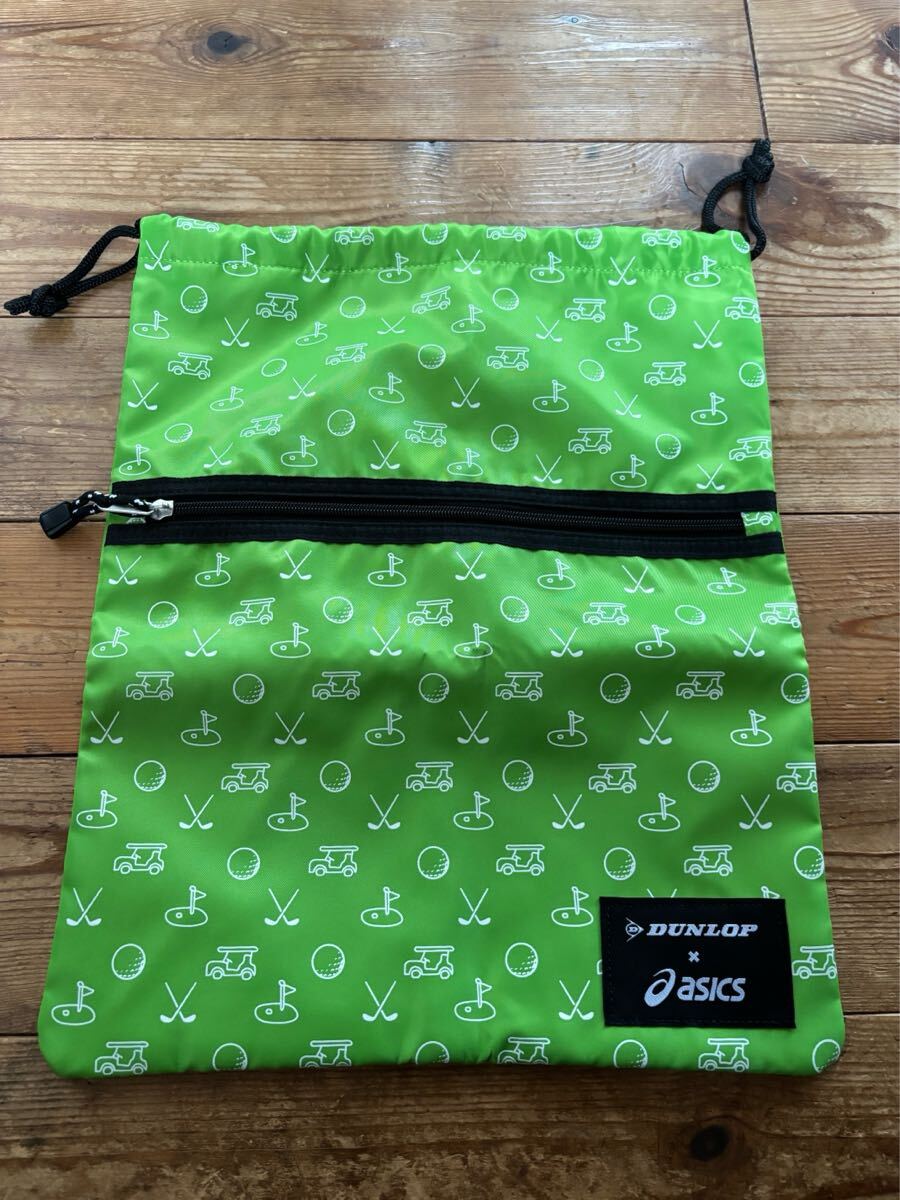 【訳あり】【かわいい】ゴルフシューズ巾着バッグ, ジップポケット付き, ASICS×DUNLOP