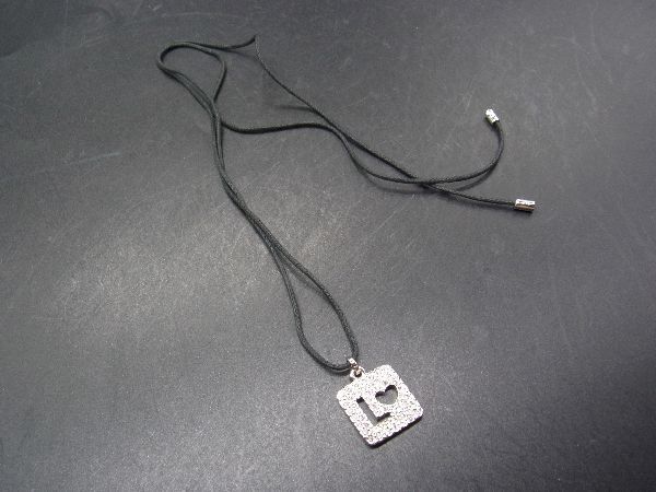 ■美品■ SWAROVSKI スワロフスキー コードネックレス ペンダント アクセサリー レディース シルバー系×ブラック系 DF1248