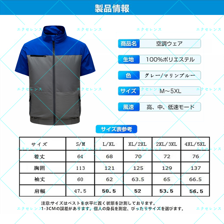 《4XLサイズ》 新品空調作業服 空調服単品 空調ベスト冷却服 ファン 熱中症対策 作業着2420-2 ブルー /グレー