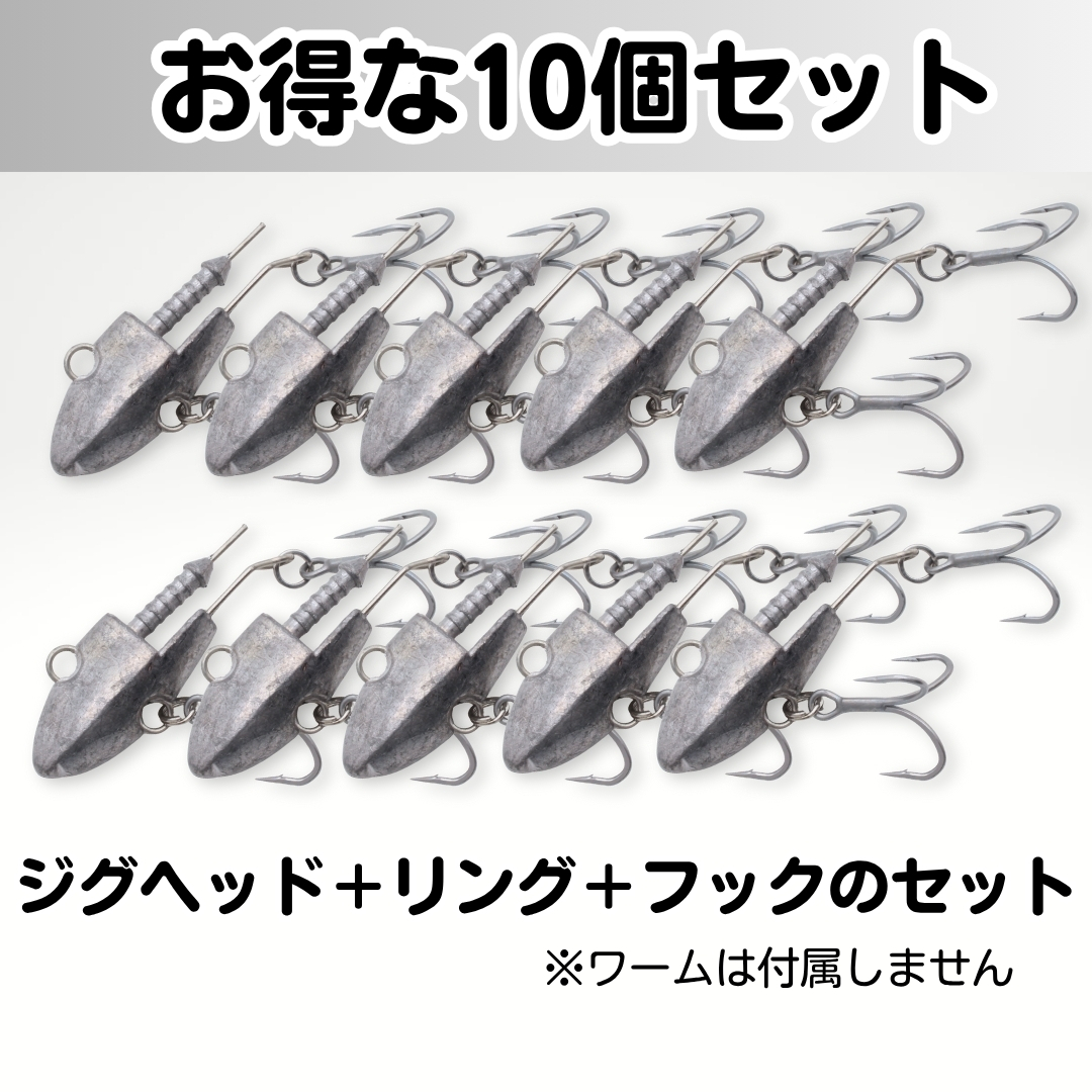 ☆こちらはジグヘッド×10個 スプリットリング×24個(予備含む) トレブルフック×20本のセットでの出品となります。