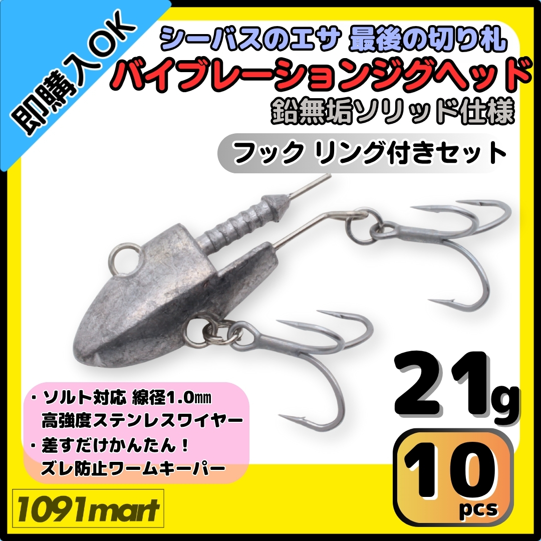 【送料無料】バイブレーションジグヘッド 鉛無垢 ソリッド仕様 21g フック リング付き 10個セット VJ風 シーバスルアー ワーム