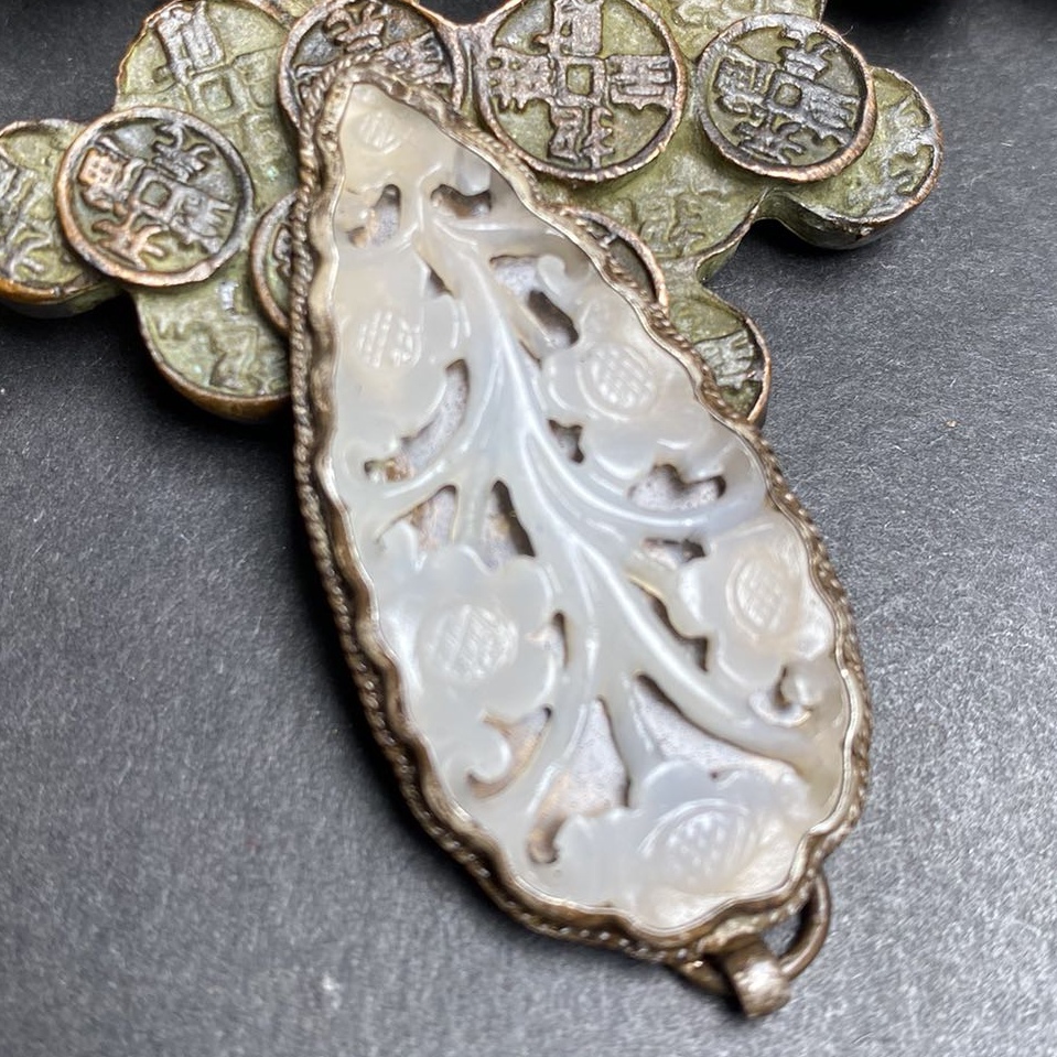 *珍品旧蔵* 清 玉彫 和田玉 純銀モザイク 金枝玉葉 花開富貴 彫刻精美 玉質温潤 極細工 中国古玩 骨董品 古美味 H48