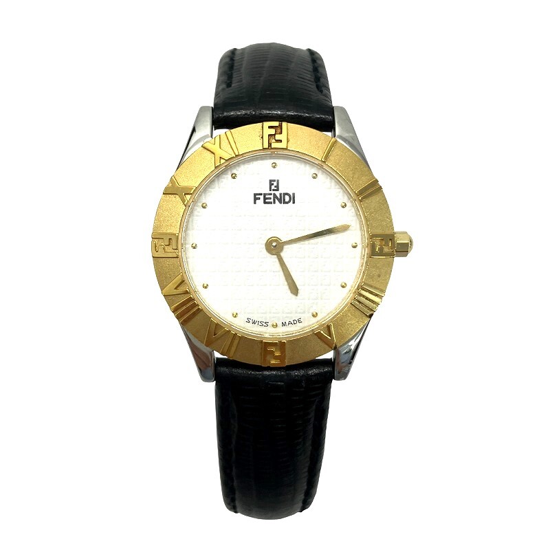 フェンディ FENDI 2000L 腕時計 ウォッチ クォーツ デジタル 黒 ブラック ゴールドカラー 動作確認済み /OU レディース