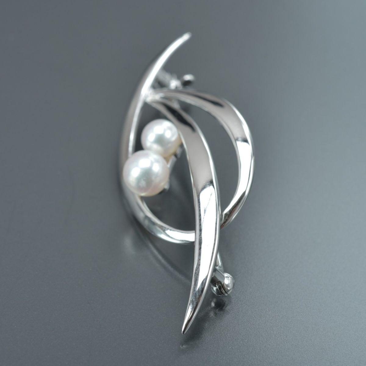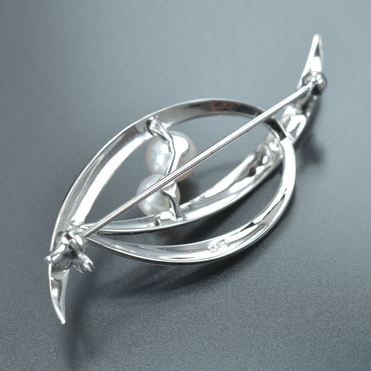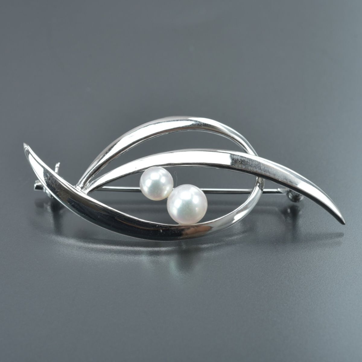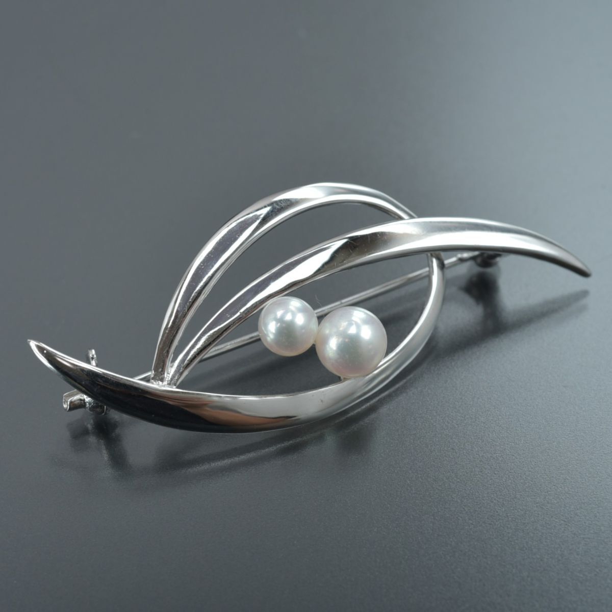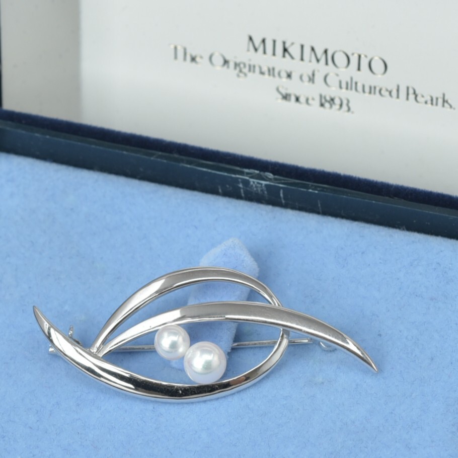 美品 ミキモト パールブローチ アコヤ真珠 パール幅5.9mm SV シルバー