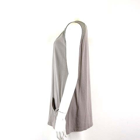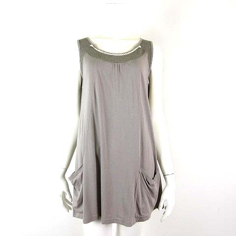 コムシコムサ CA CEST CA チュニック カットソー サマーニット 透かし編み 切替 レース とろみ 落ち感 コットン ノースリーブ M 2 グレー