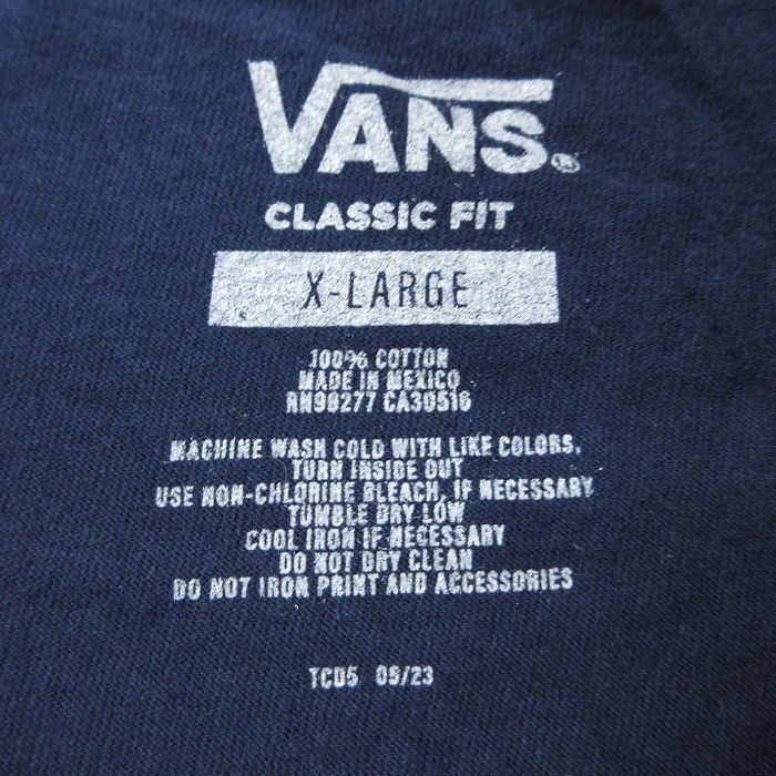 【商品名】 XL★古着 バンズ VANS 半袖 ブランド Tシャツ メンズ ビッグロゴ ヘビー 大きいサイズ ロング丈 コットン クルーネック 紺