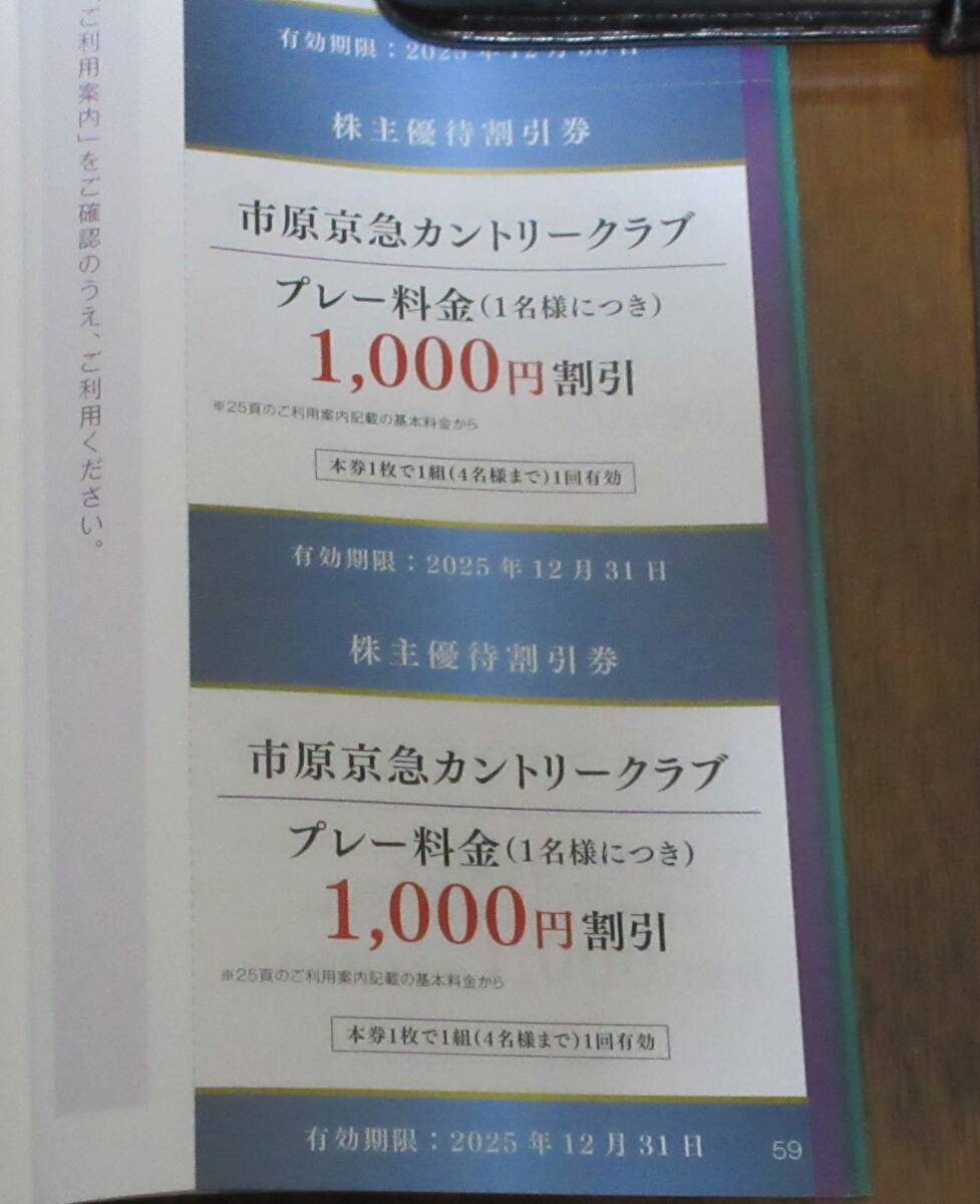 ・京浜急行の株主優待で、市原京急カントリークラブ プレー料金 1,000円割引券×4枚セットです。