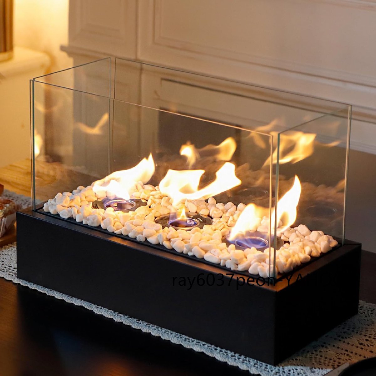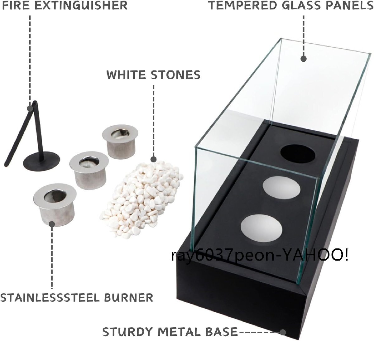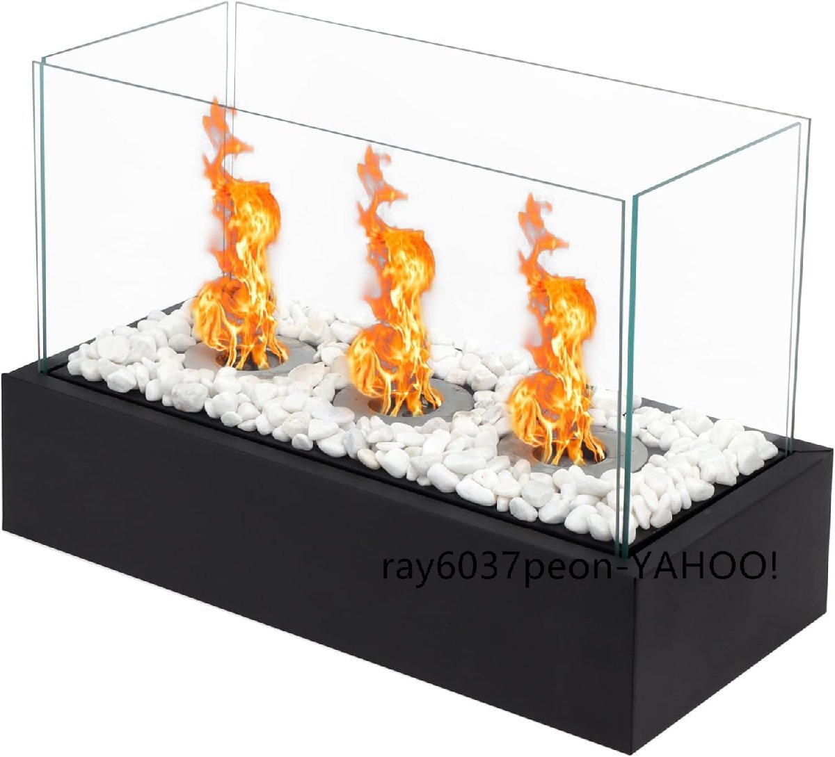 長方形大型デスクトップ暖炉 18Lx8Wx11.5H'' 携帯型デスクトップ暖炉 クリーン燃焼のバイオエタノール無煙暖炉、3つの燃焼室付き