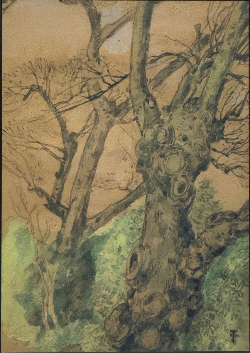 【真作保証】 鹿子木孟郎 「樹木」 水彩素描3号 年鑑参考価格1号あたり100万円