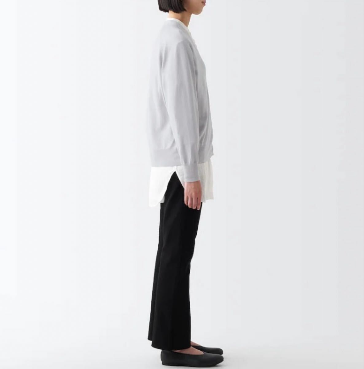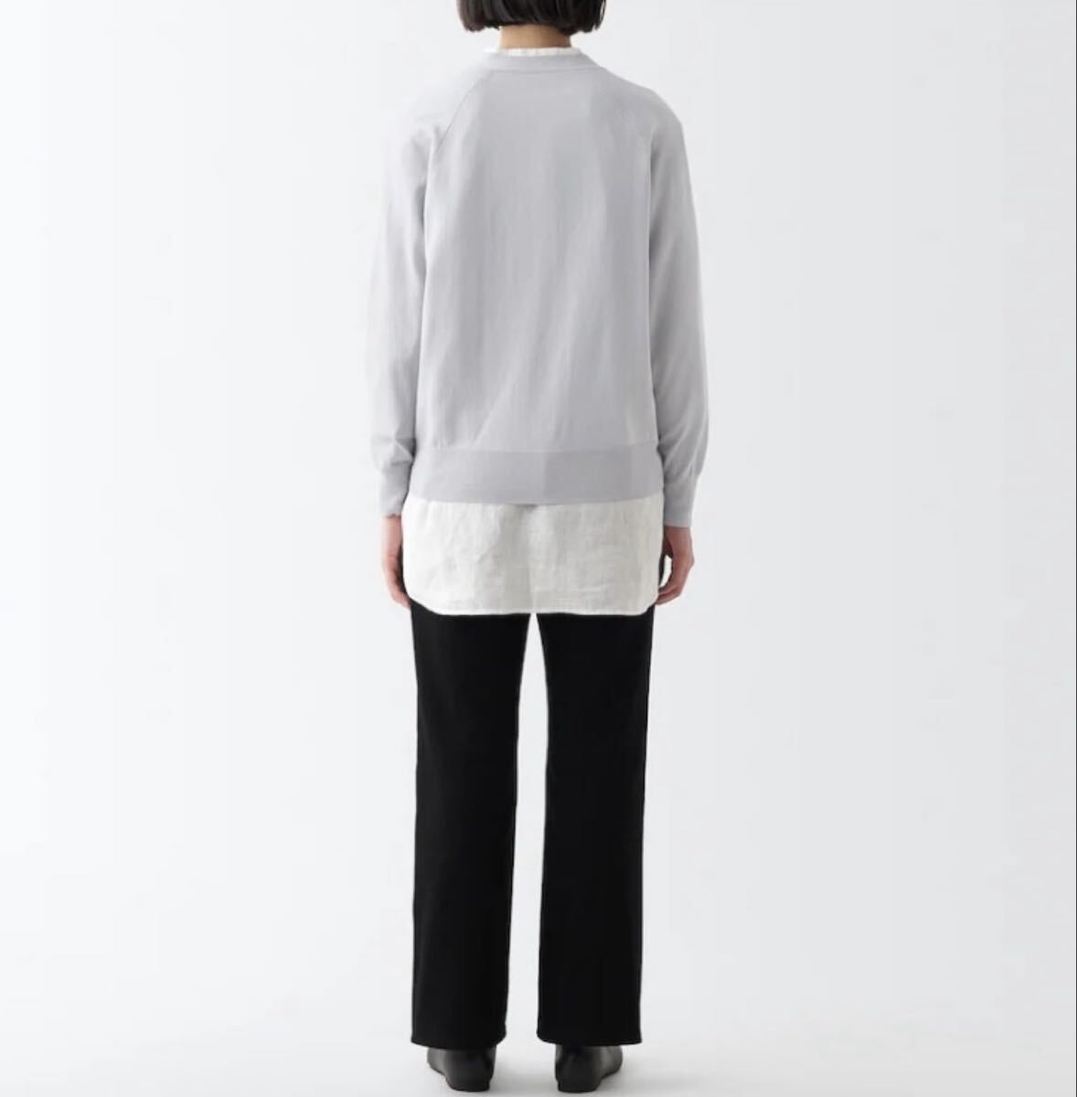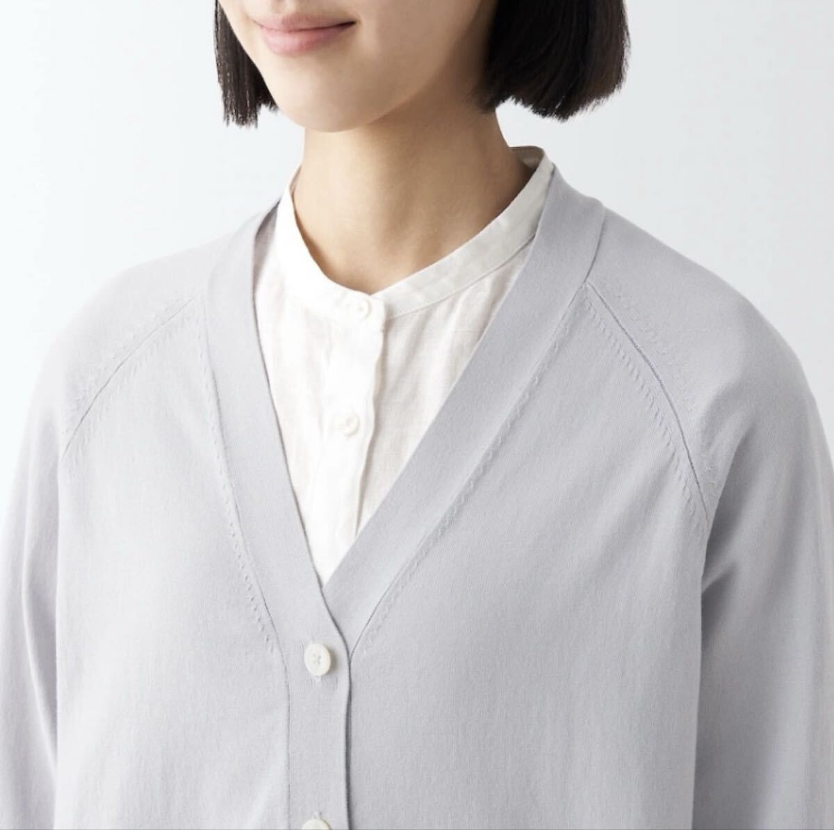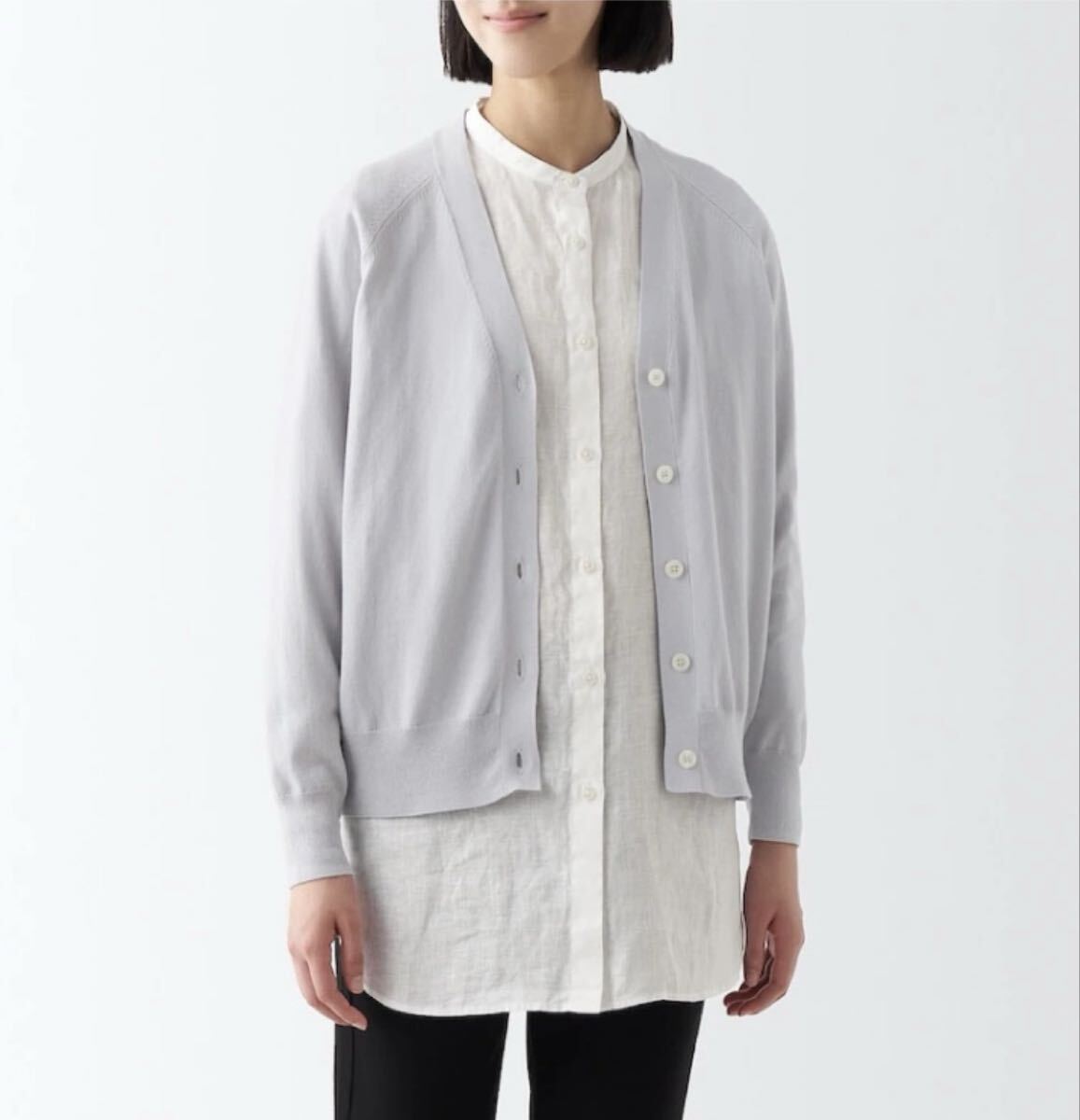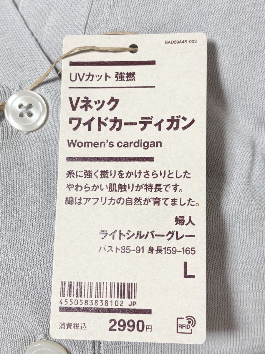 無印良品 UVカット 強撚 Vネック ワイド カーディガン ライトシルバーグレー L / コットン 綿 長袖 カーディガン グレー