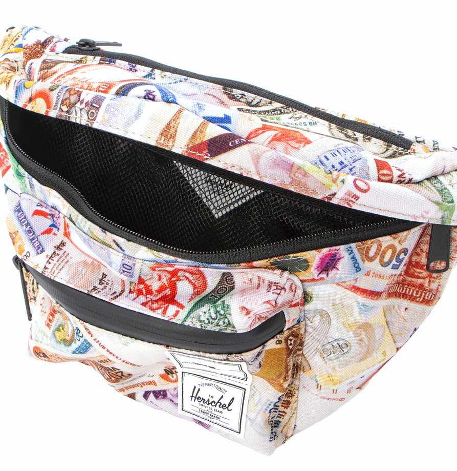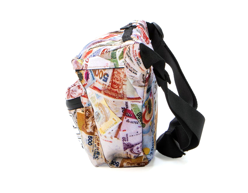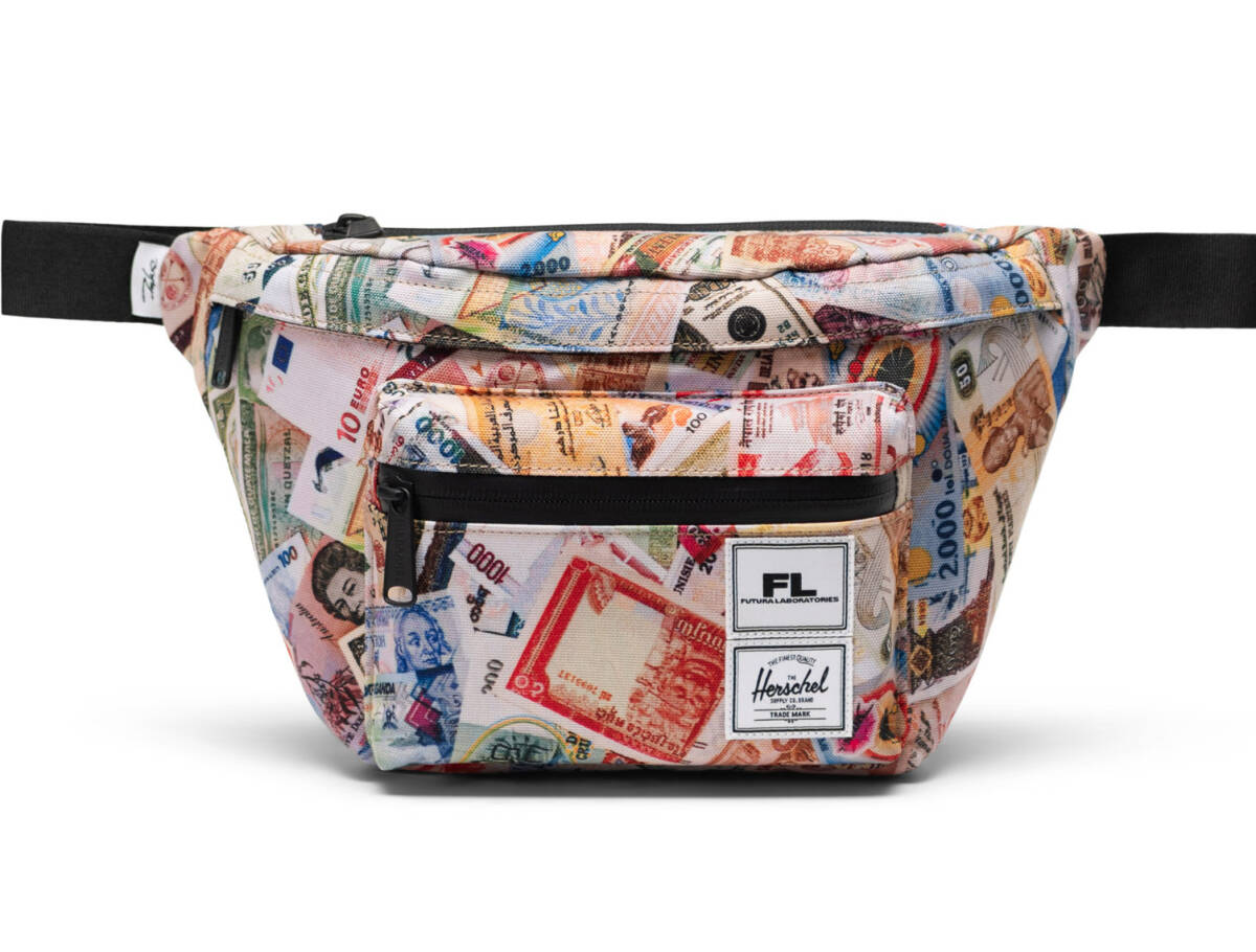 FUTURAは、彼の象徴的なFLOM「For Love or Money」パターンへのオマージュとして、Pop Quiz Hip Packを限定の紙幣プリントで再解釈。