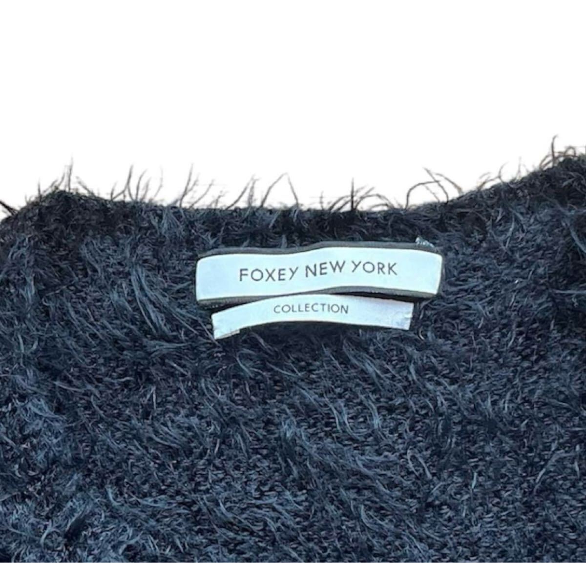 フォクシーニューヨークコレクションFOXEY NEW YORK COLLECTIONダークブルー グレー ストライプ ロングカーディガン黒
