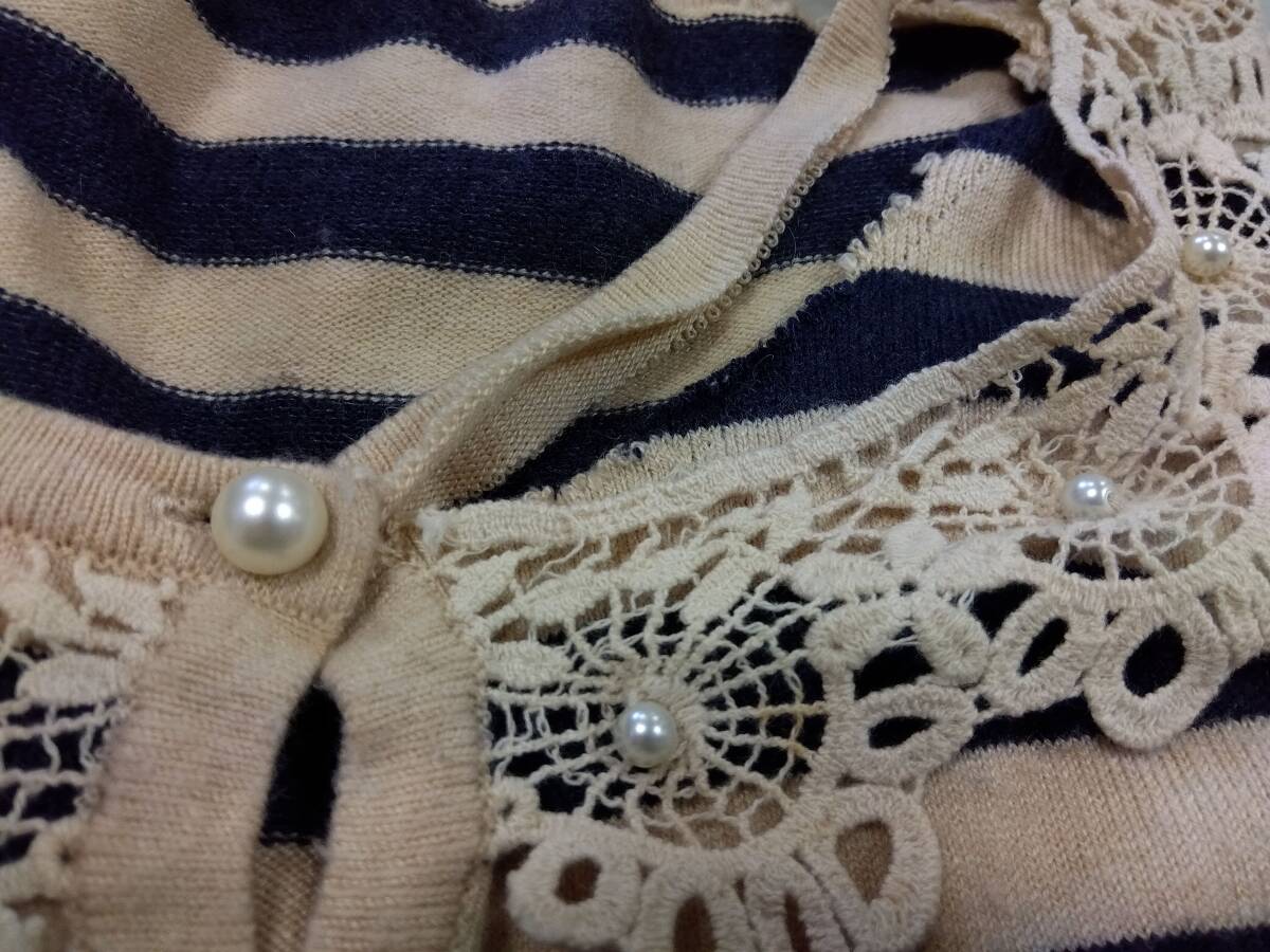 | ↑カテゴリーが異なる場合がありますがご容赦下さい↑ 大雨・台風・雪等の場合は、予告なく全ての対応をお休みさせて頂く事がありますm(_ _)m ご覧頂きましてありがとうございます。 ※ご入札前に必ず以下商品説明欄に記載してある全ての項目に目をお通し下さい。 ◇未使用品以外は中古品の扱いになりますので当方での確認時に起こらなかったトラブルが起こる可能性があります。 ◇中古品という特性をご理解いただいた上でご入札をお願いいたします。 ◇内容物は画像に写っている物が全てとなります。 ◇撮影時の光の影響で本来とは異なる色に見える場合があります。ご不安な方はご質問ください。 ※付属品等が欠品している場合がありますので画像をよくご確認ください。 !いかなる場合でも当方からの取引案内前にご入金なさらないようにお願いいたします! !使用している商品画像の転用を禁じます! 商品状態 アプワイザー・リッシェ Apuweiser-riche Mサイズ ボーダー(ネイビー×ベージュ) ・中古品です。 ・返品交換不可です。 ・ハンガーは付属していません。 ・首元に大きめの破損あります。 ・全体的に毛玉あります。 ・ボタン留め部分の生地にシミあります。 ・肩部分に白い汚れあります。 ・袖部分に汚れあります。 ◇内容物は画像に写っている物が全てとなります。 ◇現状渡しとなります。 ◇商品や外箱に汚れ、擦れ、傷がある場合があります。 ◇詳しい購入時期やその他の専門的な質問には一切お答えできません。 ◇お写真のみでのご判断が難しい場合は、申し訳ございませんがご入札をお控え下さい。 ◇目立つ傷等があれば、説明書き及び画像にて掲載するように心掛けておりますが、見落とし等ある場合もございます。 ◇中古品という特性上、無傷の商品はほとんどございません。 ◇撮影時の光の影響で本来とは異なる色に見える場合があります。ご不安な方はご質問ください。 ※上記以外の欠陥があるかもしれませんが、一度人を介しておりますので完璧を求められる方や細かい部分まで拘りのある方はご入札をお控え下さい。 複数落札 同梱は同日落札分(日付が変わった0時台終了分は含む)のみ 運搬時、手で簡単に持ち運べない重さになるような物に関してはコチラの判断で個口に分けて発送させて頂きます。ご了承ください。(例 ビールケース2箱までなら同梱可能。) ◇複数落札で同梱は可能であれば同梱致しますが、取引ナビ上でのお支払い、進行は別々での進行になります。ご了承ください。 ◇ID毎のお取引とさせて頂きますので、同じ方でも別IDの場合は別取引・別発送となります。 ◇大型商品(音楽機材・楽器・釣竿等)の同梱は出来ません。 ◇商品名が【長】から始まるものと、それ以外の記号や文字から始まる商品名のものの組み合わせでの同梱はできませんのでご注意下さい。 ※日をまたいでの大量落札につきましては、1口毎にお支払い頂いてからの発送、次のお取引に移らせて頂きます。 | ||