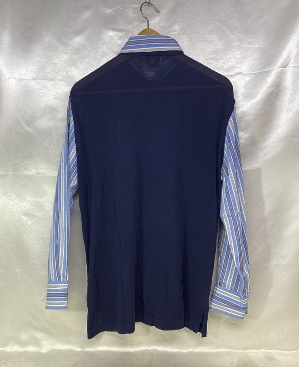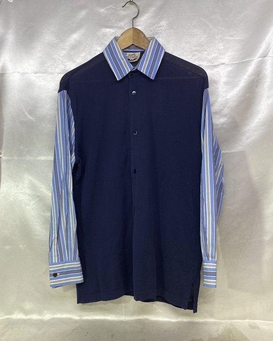| 状態 | Herms エルメス イタリア製 セリエボタン 薄手ニット切替 ストライプシャツ 中古品。通常の着用に伴う状態。襟が取り外し可能な仕様になっています。日本語タグはありません。 |