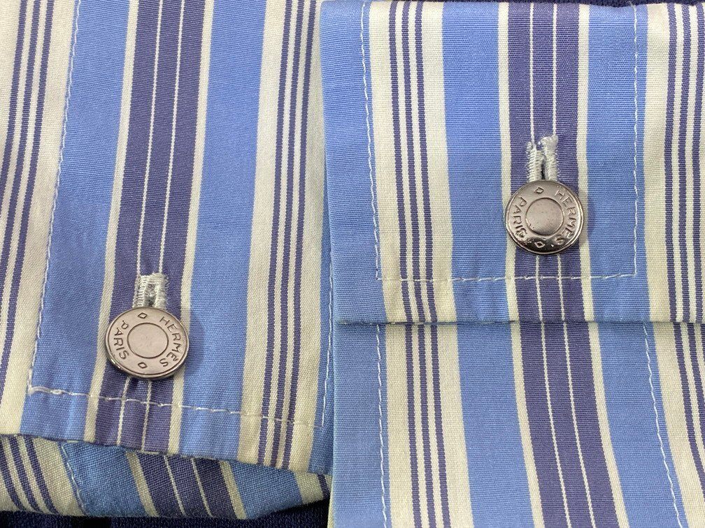 | 状態 | Herms エルメス イタリア製 セリエボタン 薄手ニット切替 ストライプシャツ 中古品。通常の着用に伴う状態。襟が取り外し可能な仕様になっています。日本語タグはありません。 |