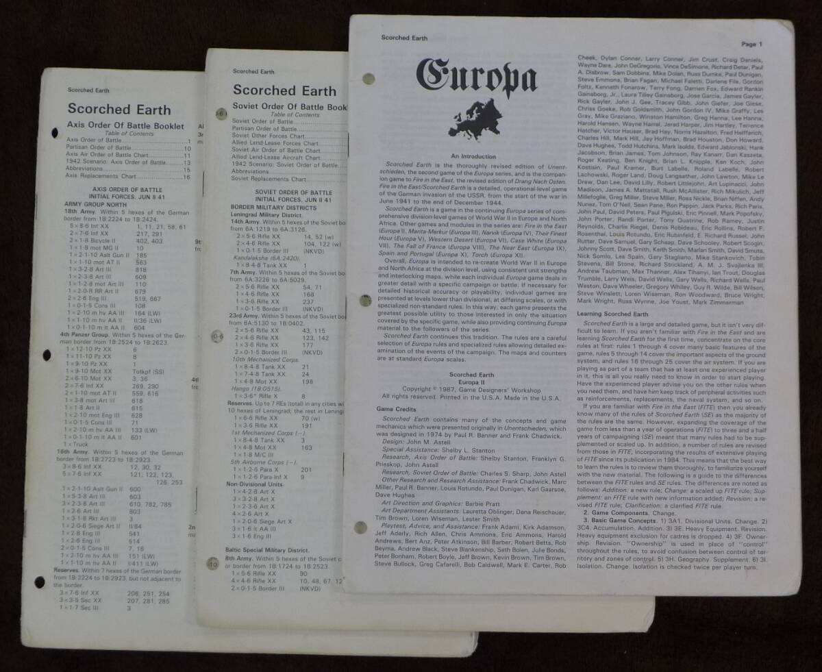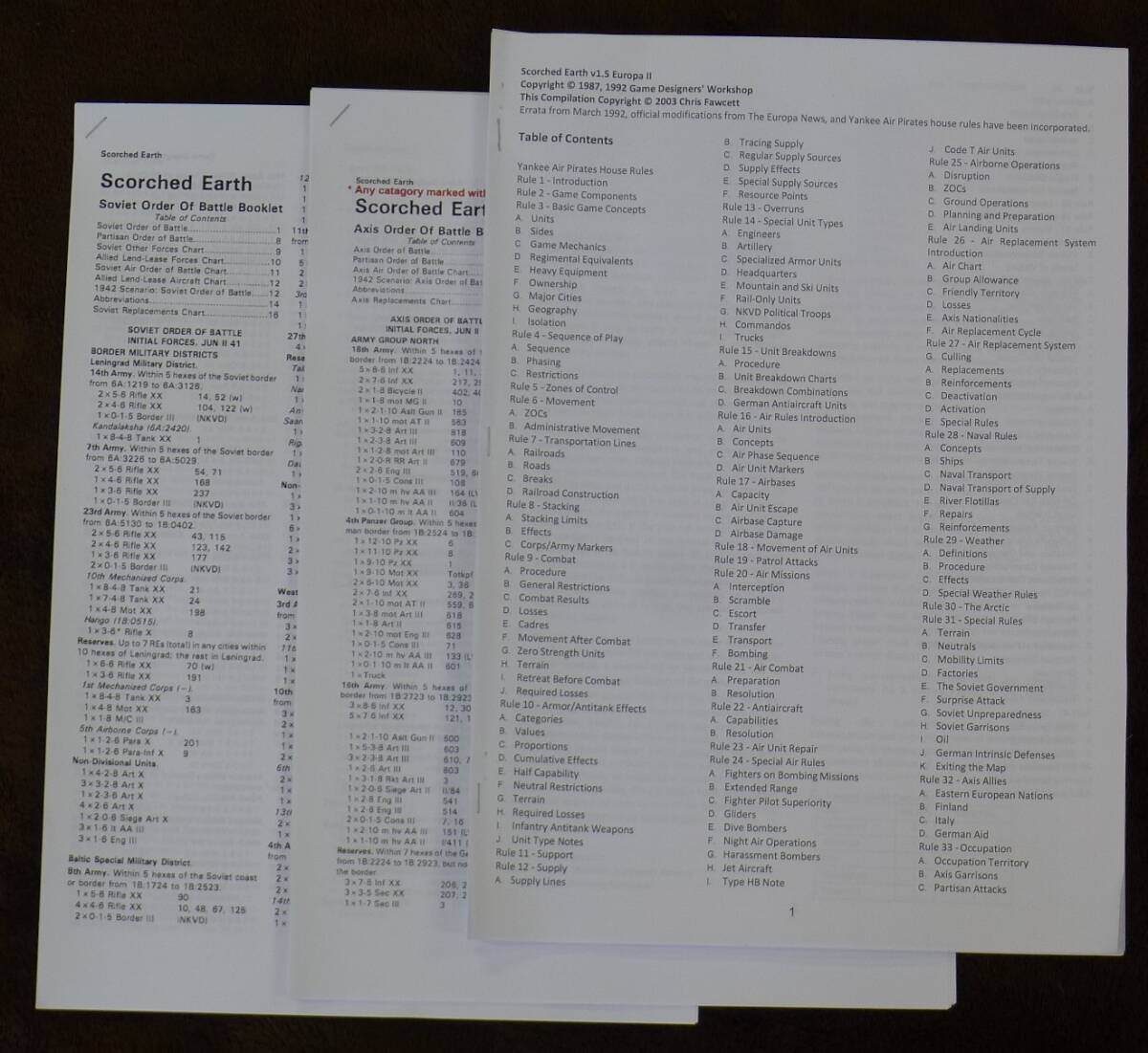 おまけとして,Errataを反映させた,Fire in the East Scorched Earth の双方に適用される1992版のルールブック(英文,75ページ)と枢軸軍とソ連軍のOOBの改訂版のコピーをお付けします.