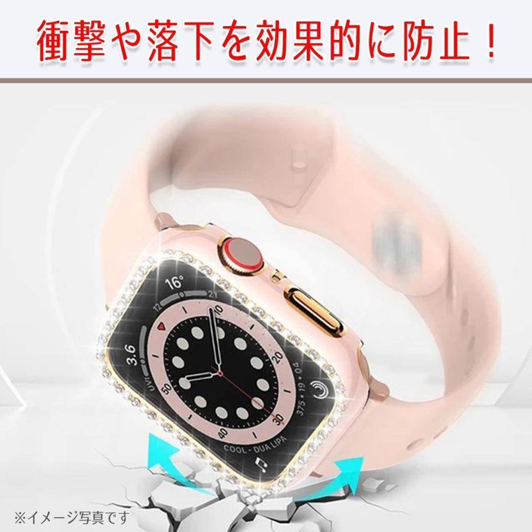 アップルウォッチ用のラインストーン付き保護カバー。キラキラと輝くラインストーンを配置した、ラグジュアリーで上品なデザイン。