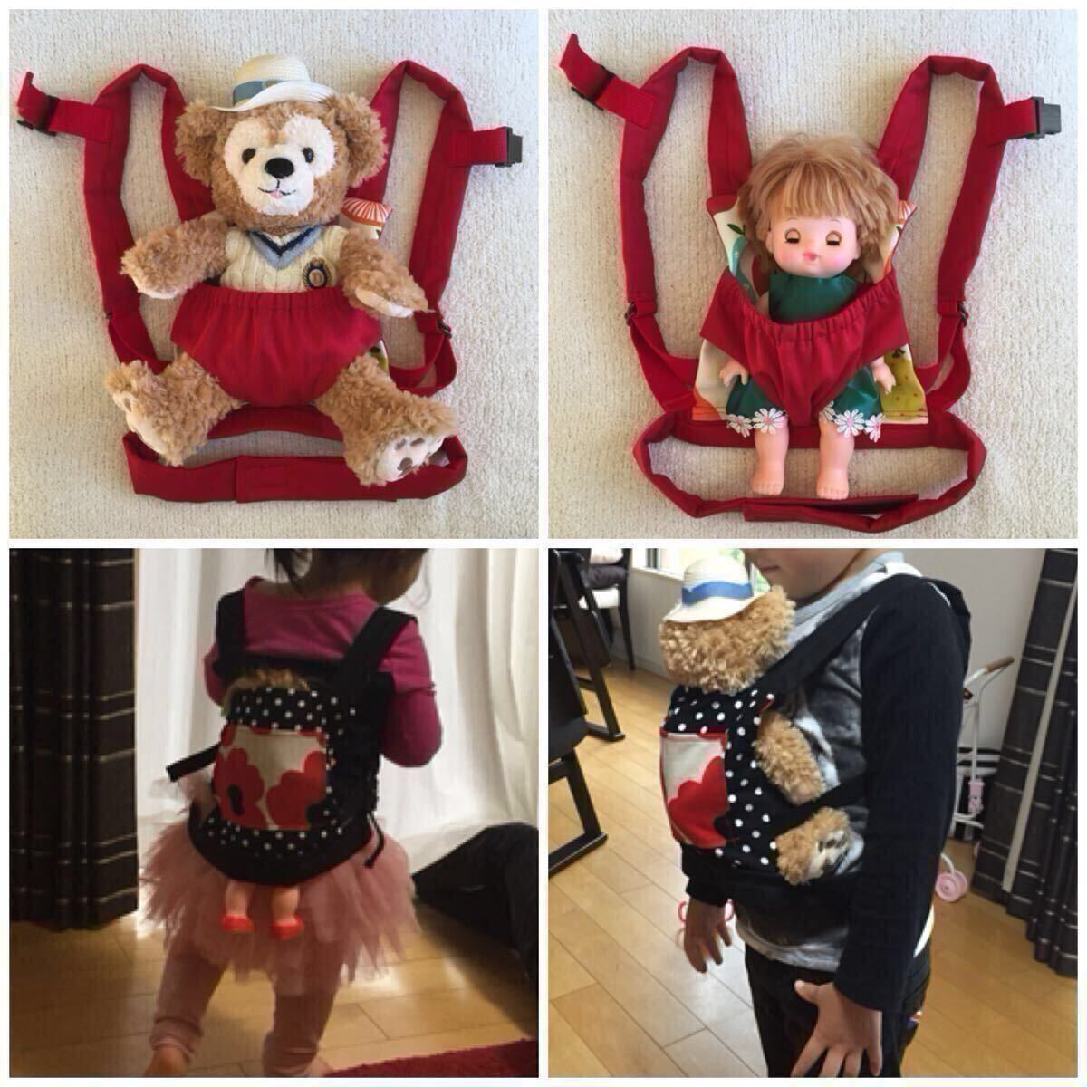 おんぶの場合、お人形をパンツに入れてカバンを背負うような感じです。