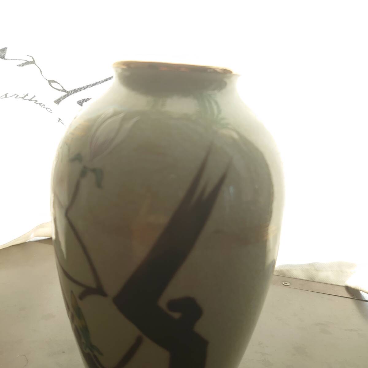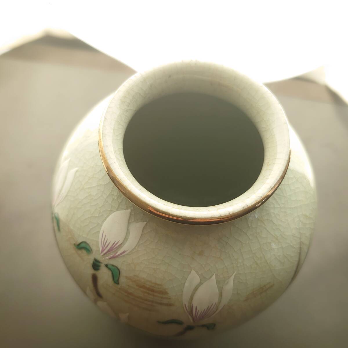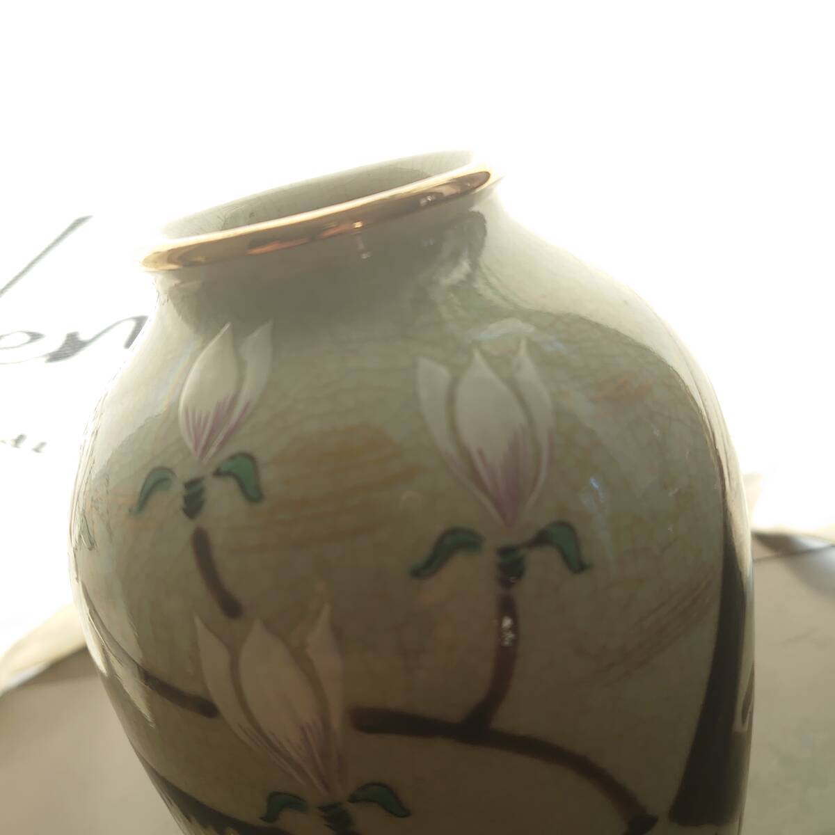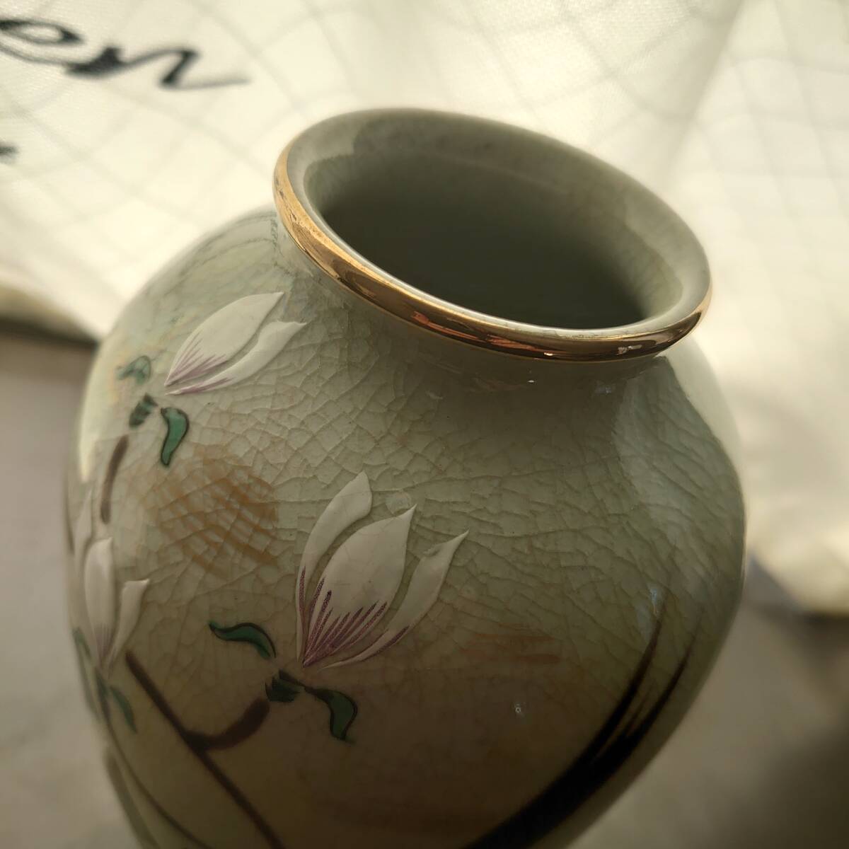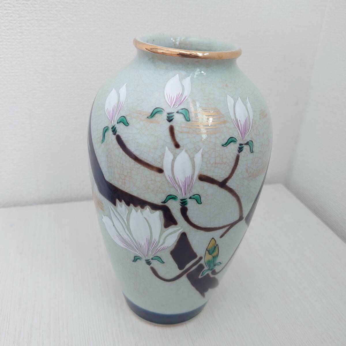 陶峰 【九谷焼】 金彩 玉蘭花色絵花瓶 花入 花器 【古美術 骨董品】