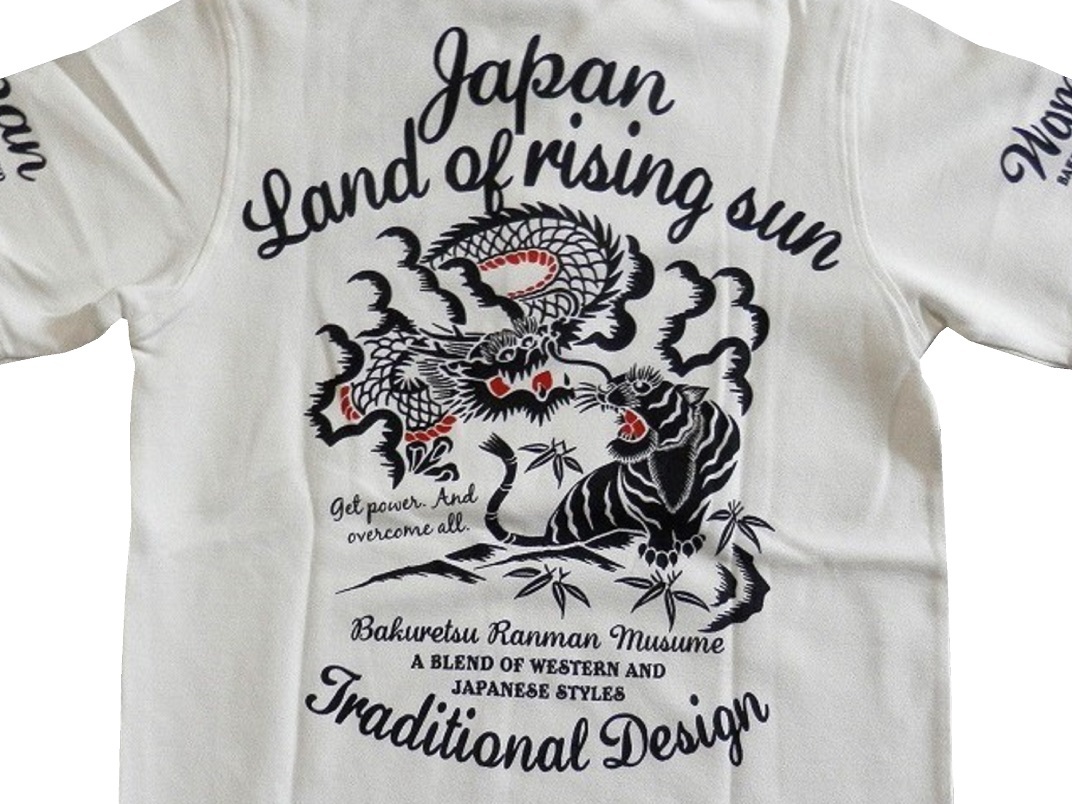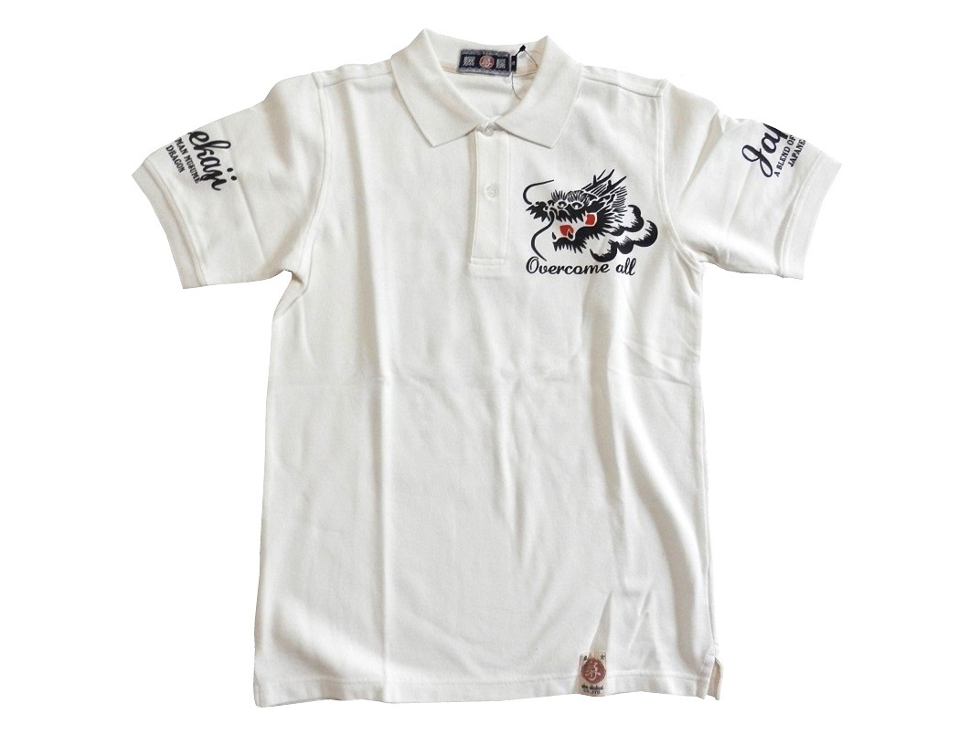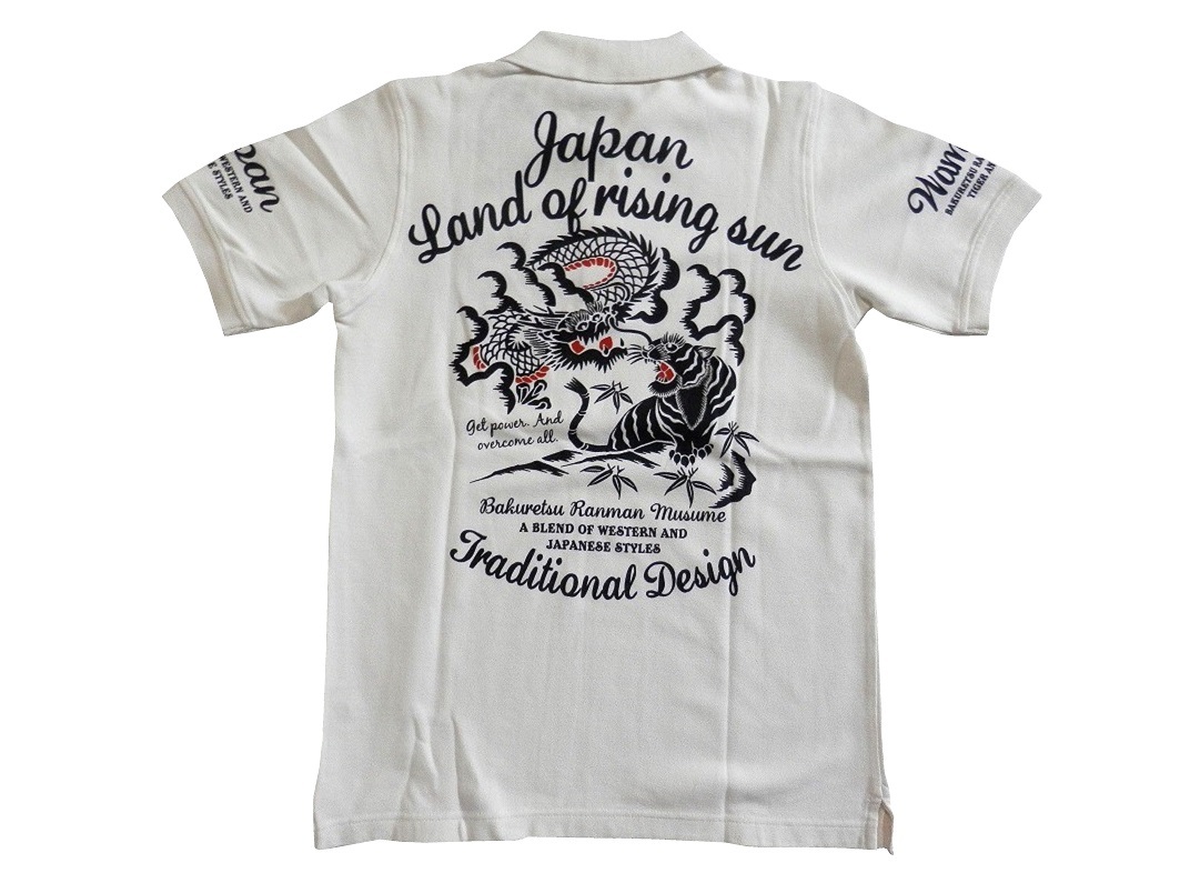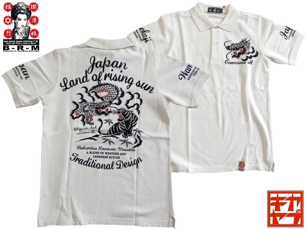 爆裂爛漫娘/B-R-M/Mサイズ/半袖ポロシャツ/RMPS-110/白/新品/送料無料/エフ商会/和米カジ/和柄/龍虎/ドラゴン/タイガー