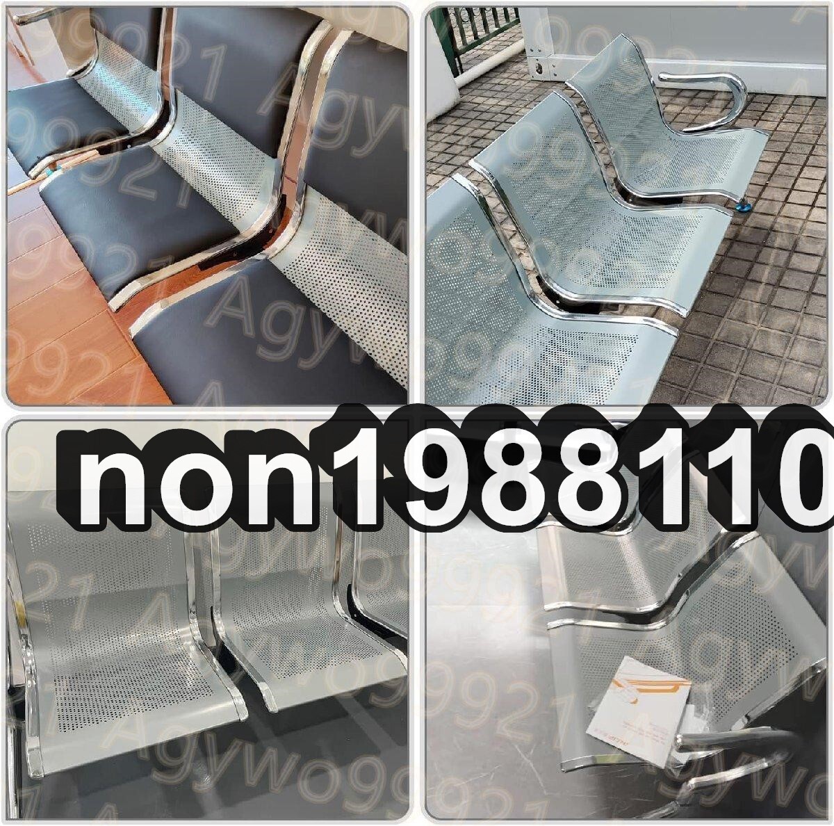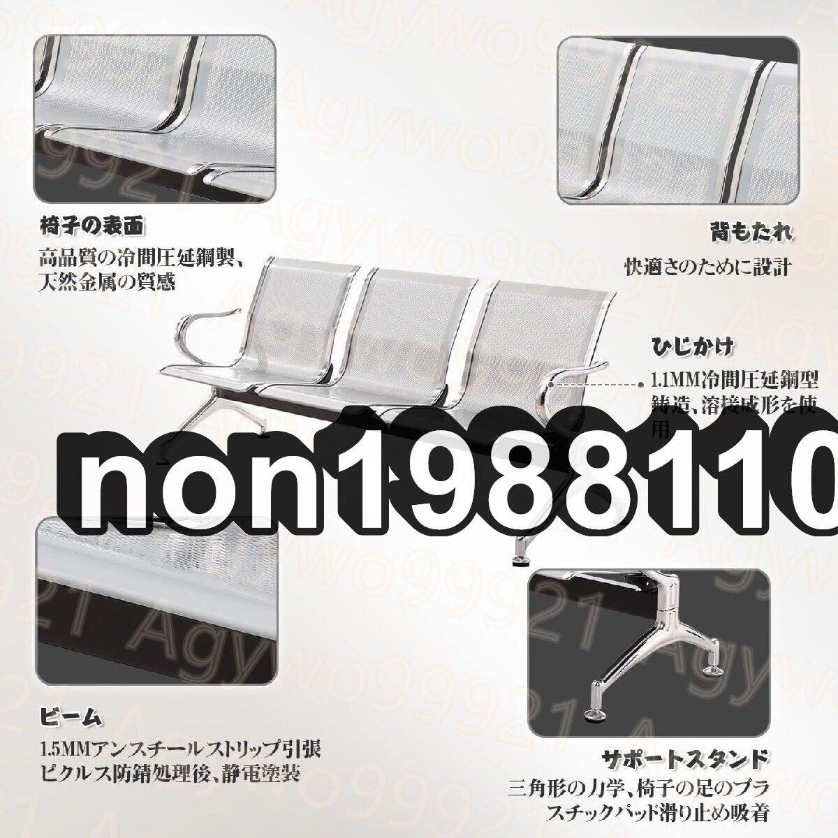 3つの椅子 レセプションチェア ゲストチェア 待合椅子 背もたれ付き アームレスト ステンレス鋼 防汚 175cm*65cm*78cm シルバーグレイ