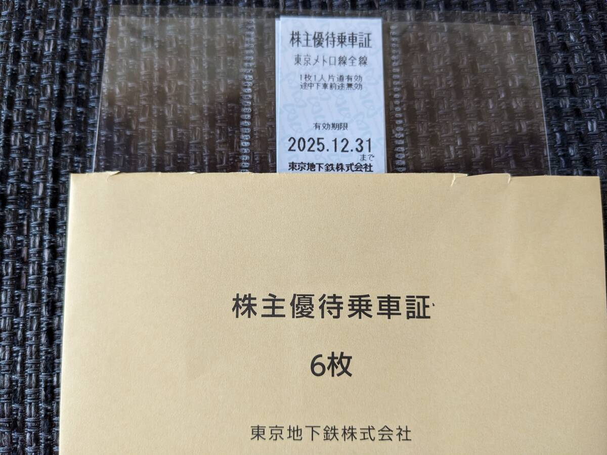 東京地下鉄 東京メトロ 株主優待券 乗車証6枚 2025年12月31日までです。