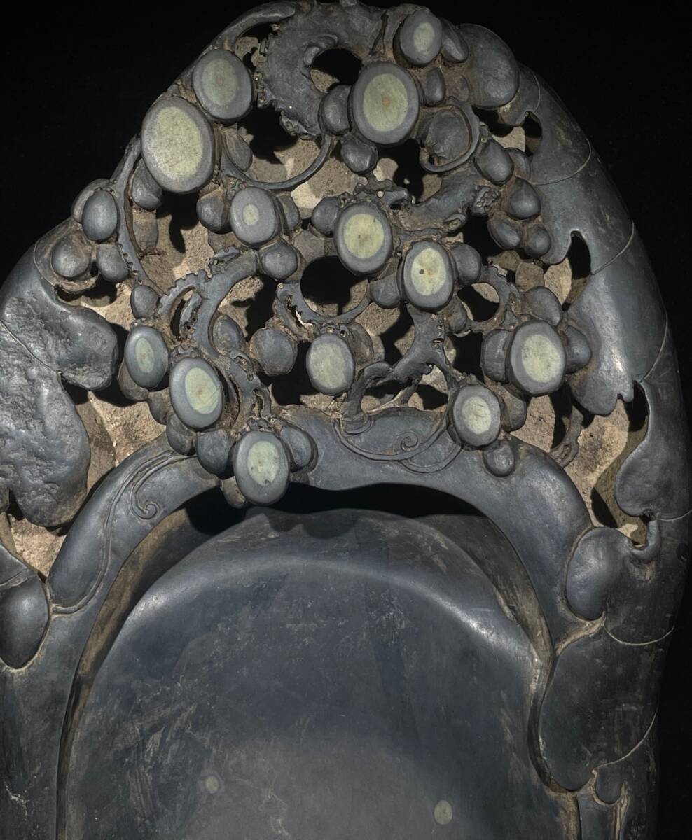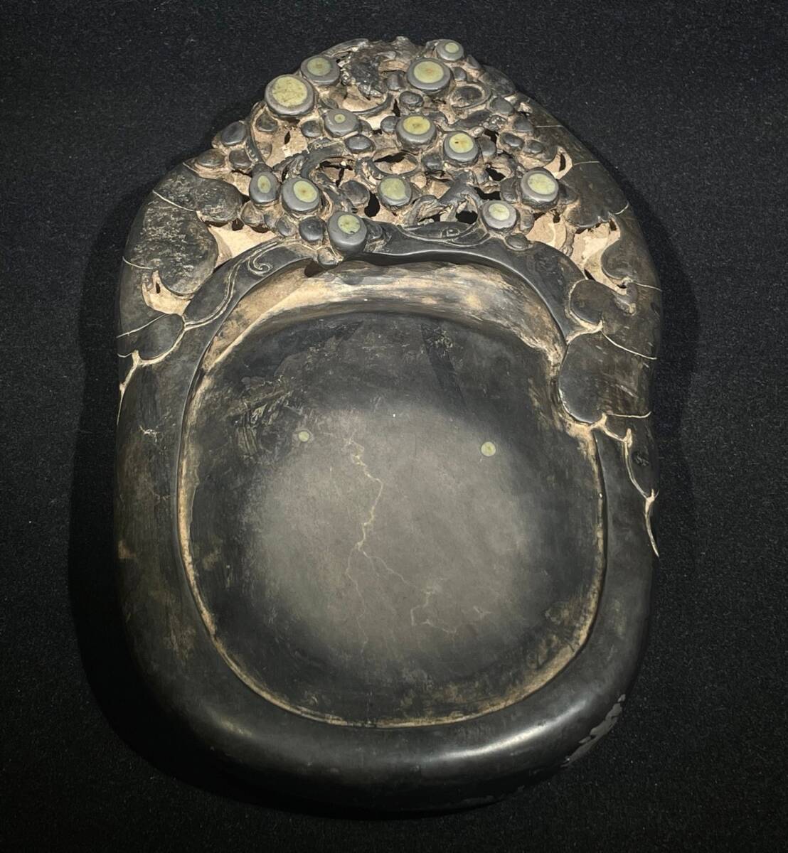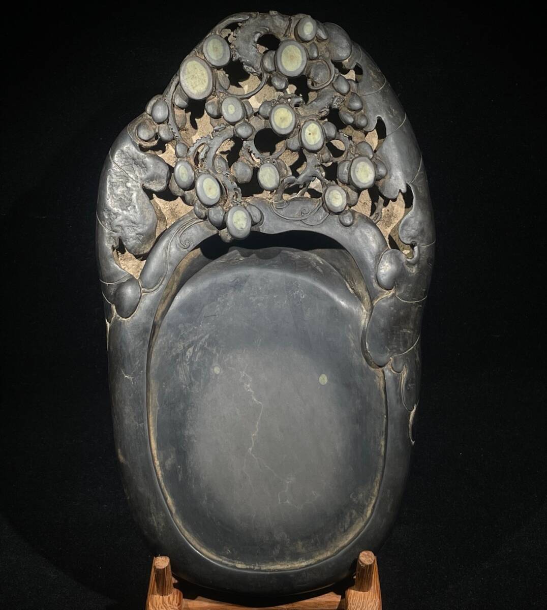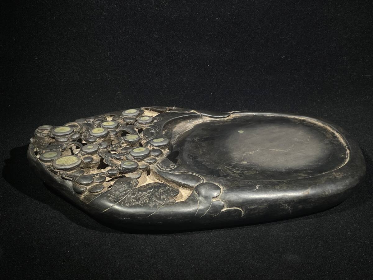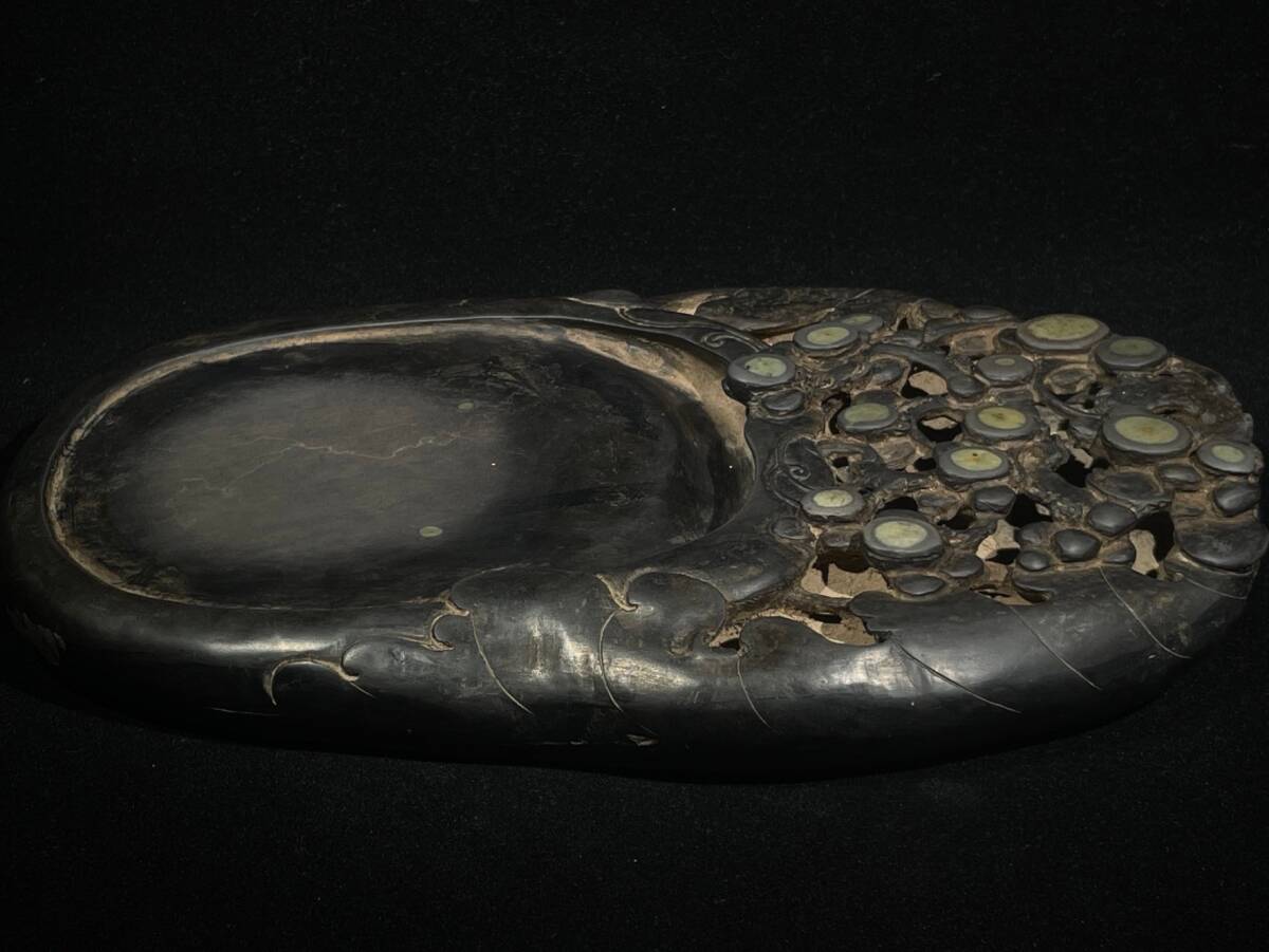 旧蔵 中国四大名硯-端硯 梅花坑 碩果累累 端硯 寓意深刻 彫工精細 包漿醇厚 古硯 文房硯 時代硯 極細工 中国古玩 骨董品 古美味 207