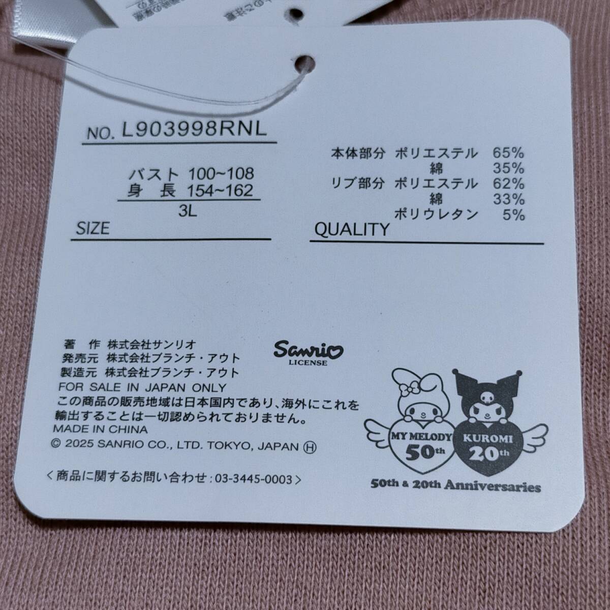 【3Lサイズ】マイメロディ 機械刺繍 トレーナー 部屋着 スウェット サンリオ