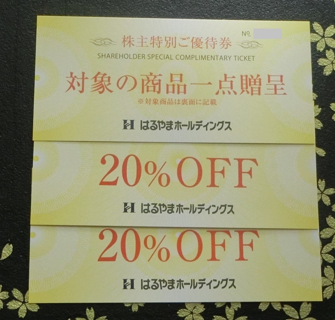 はるやま 株主優待券 「対象商品一点贈呈券」1枚  「20%OFF優待券」2枚 有効期限:2026年7月31日