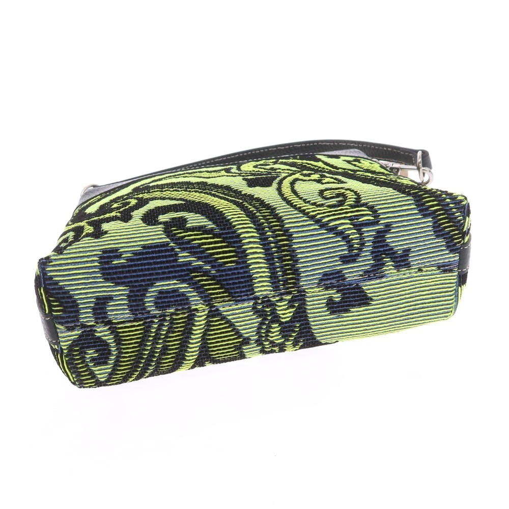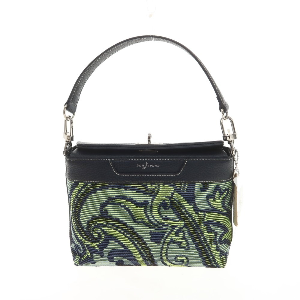 【未使用】ボンジャポネ BONJAPONE ジャカード ハンドバッグ ネイビーxライトグリーン【W22xH16.5xD7.5】 BPD