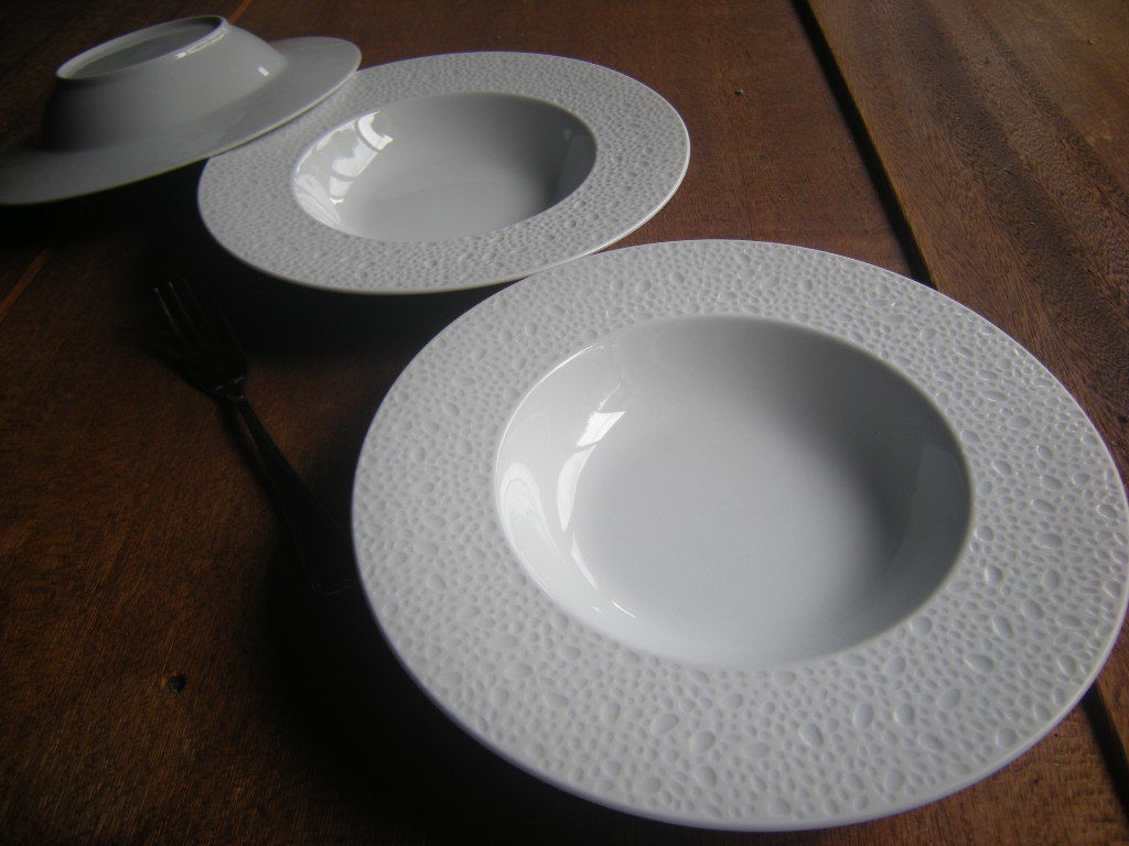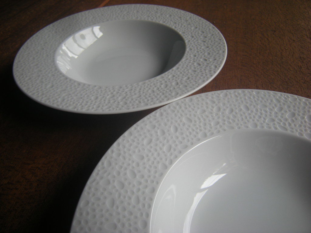 山◎美濃焼【新品・未使用】エンボス 象嵌 小石 白磁器 スープ・パスタ プレート 9in(24㎝x4㎝)1枚から*新作*高級ホテルうつわ*