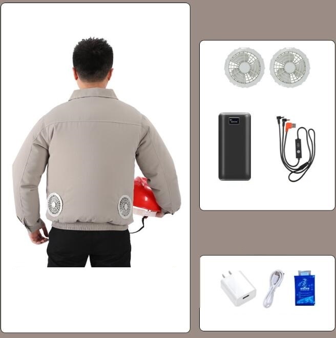 1.[空調服セット・保冷剤専用ポケット]空調服*1、バッテリー*1、フアン*2、接続ケーブル*1、充電器*1。背中には保冷剤専用ポケットがついているので、暑さ対策にも効果的です。(保冷剤は別売りです)。 空調服のファンは5枚の大型羽根を利用することにより、風がより強くなるので快適に過ごせます。風量の設定は4段階あり、最大風量の場合、約10時間 最小風量の場合、約24時間連続使用可能です。作業服ファンがウェアから突起することがないフラット型ので、作業中の動作を防げず、快適な作業を実現した。 2.[扇風機ジャケット・サイズ調節可能]大きめがいい?普通サイズがいい?こちらのファン付き作業服はサイズ調整ができます。最新版ファンジャケットは前のジッパーが2列ついているので、ファスナーで胸回りと腰回り2段階調節可能でお客様の体型に合わせて使うことができます。日焼け対策袖口にダブルボタンを採用し、自由にサイズ調節できるので空調作業服ないの空気の排出に有効です。光りを反射するテープが付いているので、夜間や暗証での作業での事故防止に効果を発揮します。空調服ワークマンの背面中央に風帰路メッシュがあり、体と空調ジャケットの間に風の通り道を作りて、涼しさは確保しながらストレスなく作業をしていただけます。 3.[大容量バッテリー]PSEなど認証を取得した充電式バッテリーを使用するのでお客様が安心して安全に使用できます。大容量の14400mAhバッテリーが搭載されているので(1個点灯の際)、作業着とき長時間使い続けることができます。電池残量ゼロからの充電時間はわずか6時間で充電時間短縮も扇風作業服人気の理由です。また、スマホ、IPADなどの充電器を使用しても問題がありません。電池のパネルにバッテリー残量を表示することができるので、ご安心して使うことができます。他メーカーのバッテリーが約360g程度あるのに対し、弊社は260gの驚き軽いが特徴です。そのためお客様は長時間身につけていてもあまり気にならないです。 4.[空調ウェア]ポリエステル100%素材で色落ちやシワの心配が少なく、洗濯後のお手入れが簡単な事が人気の理由です。冷却服の糸を高密度に織り込んでいるのでファンからの空気を漏れることなくしっかりと循環させて空調服の涼しさを最大限に発揮します。定番の長袖はファンを通して送られてくる冷風で手元を含めて体全体をしっかりと冷やすことができます。また、腕全体を覆うことができるので、危険な作業をする場合にもケガなどのリスクが下がります。 Color グレーSize XL-2XL