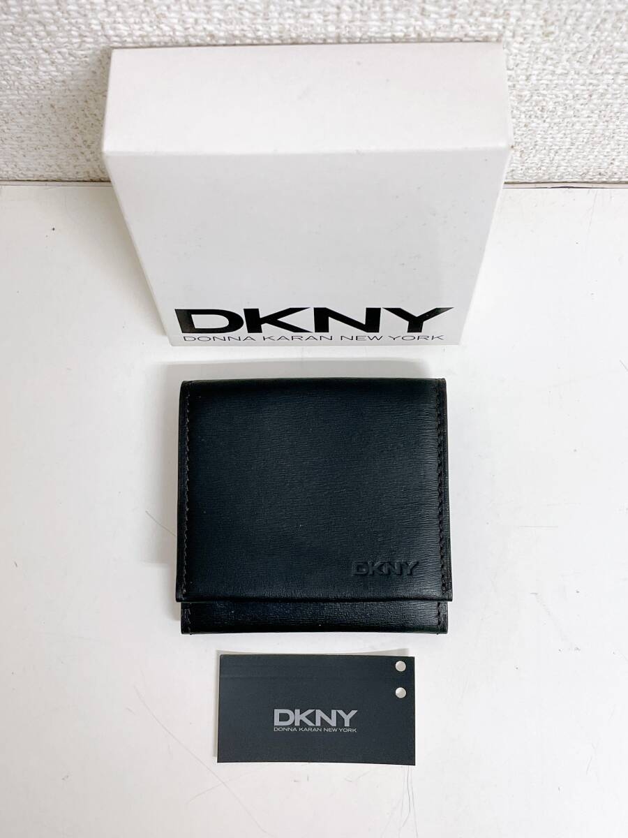 【DKNY ダナキャラン ニューヨーク 本牛革 ブラック 小銭入れ】「5045-SH-BL」箱あり/メンズ/A77-489