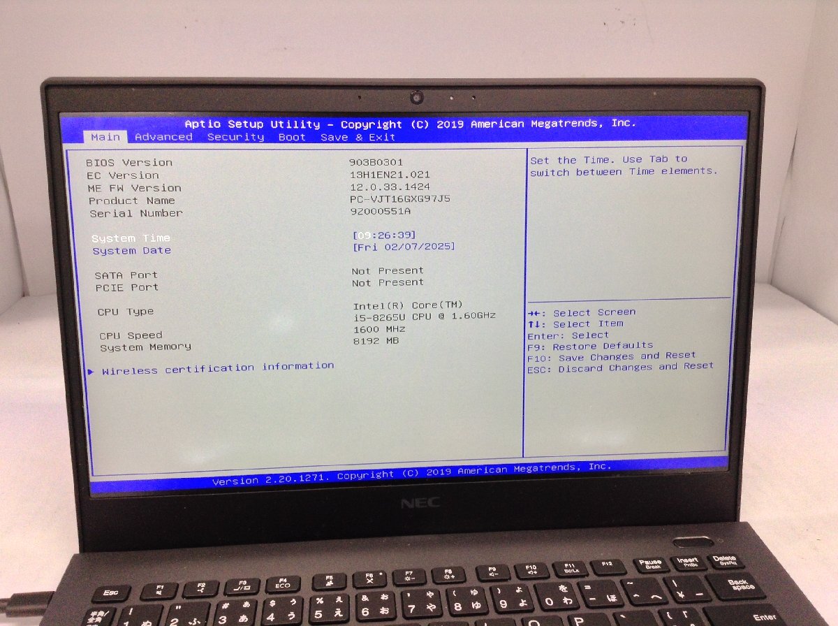 ジャンク/ NEC PC-VJT16GXG97J5 Intel Core i5-8265U メモリ8.19GB ストレージ無し 【K08277】