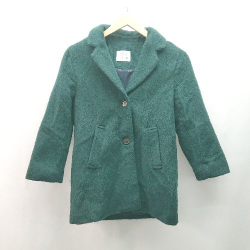 ◇ ZARA ザラ 起毛 裏地 ボタン Vネック シンプル オシャレ 秋冬物 長袖 コート サイズ140 グリーン レディース E