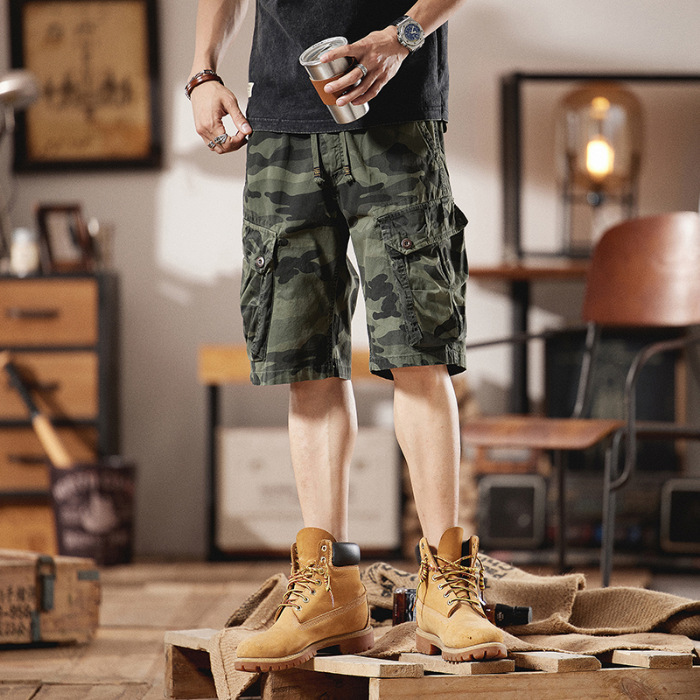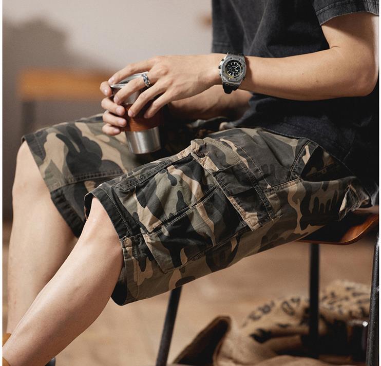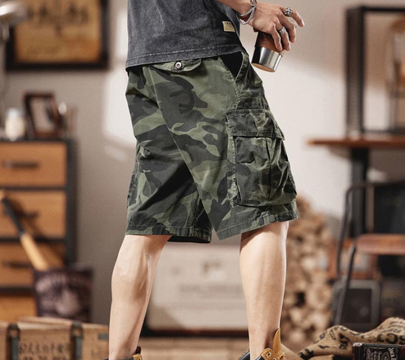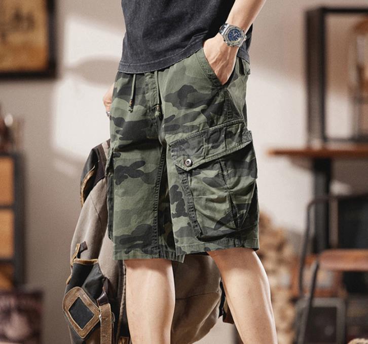 ワークパンツ ショートパンツ クロップドパンツ 五分丈 アウトドア カーゴ メンズ・新品 高品質【2815】迷彩グリーン W31