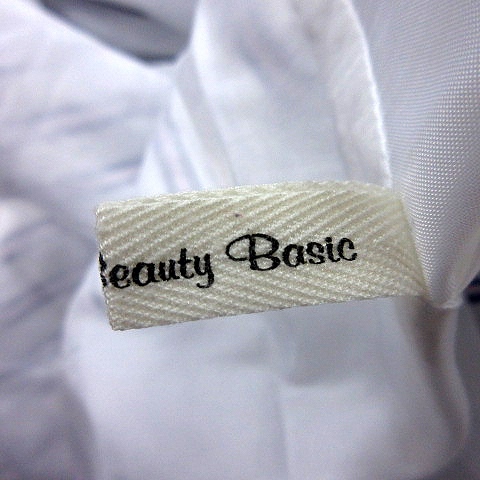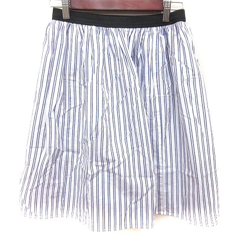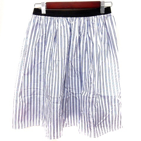 ナチュラルビューティーベーシック NATURAL BEAUTY BASIC スカート フレア ひざ丈 ストライプ M 白 レディース
