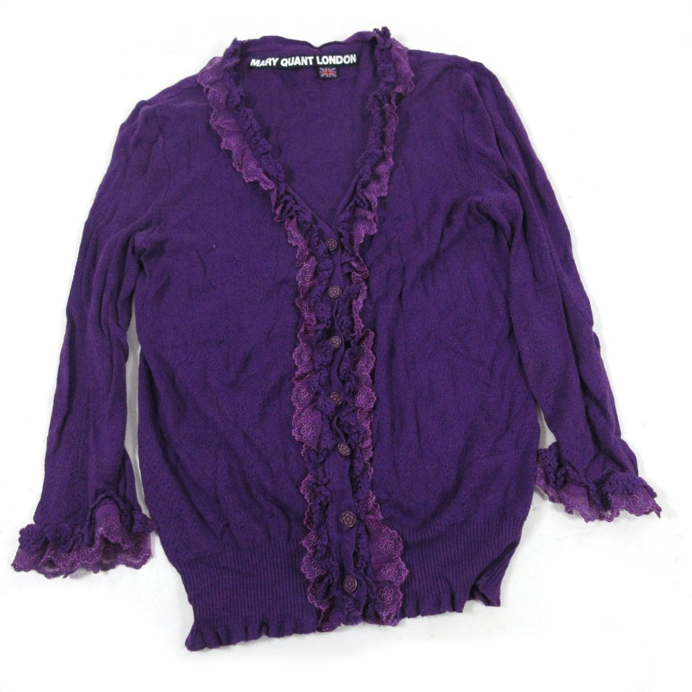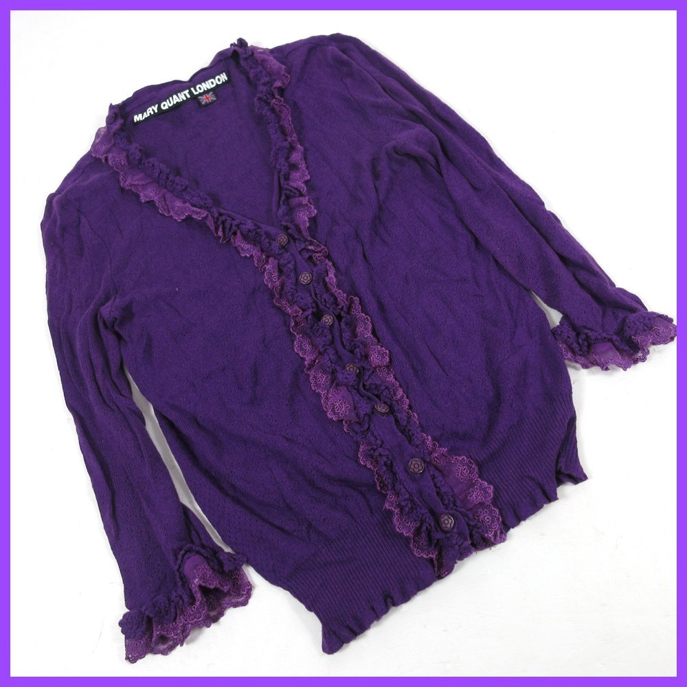 ●♪MARY QUANT(マリークワント)★カーディガン★トップス★紫★M★レースフリル★M