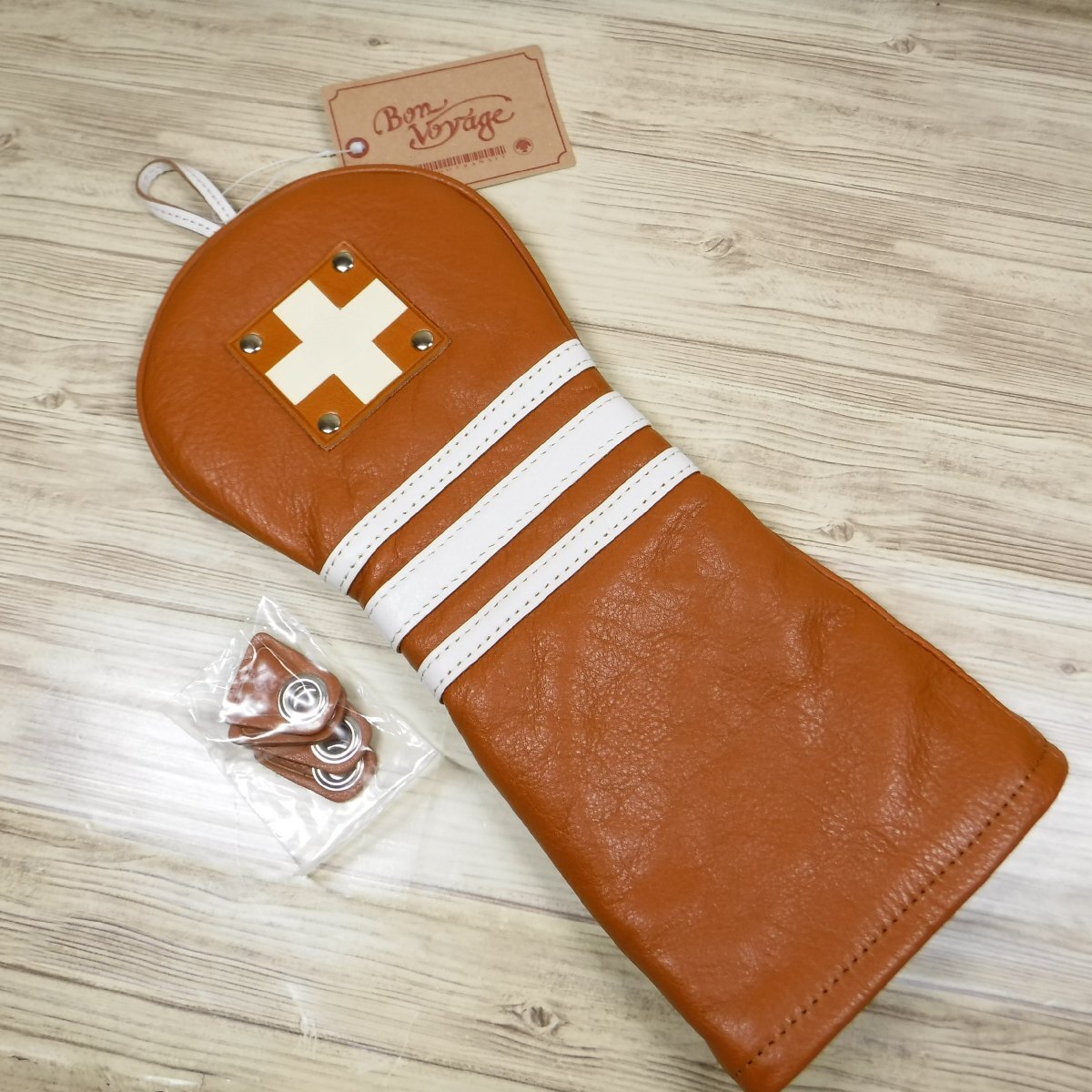 G468 木の庄帆布 新品 牛革 ヘッドカバー フェアウェイウッド用 定価8700円 オールレザー 総革 キャメル 茶 #3 #4 #5 FW用