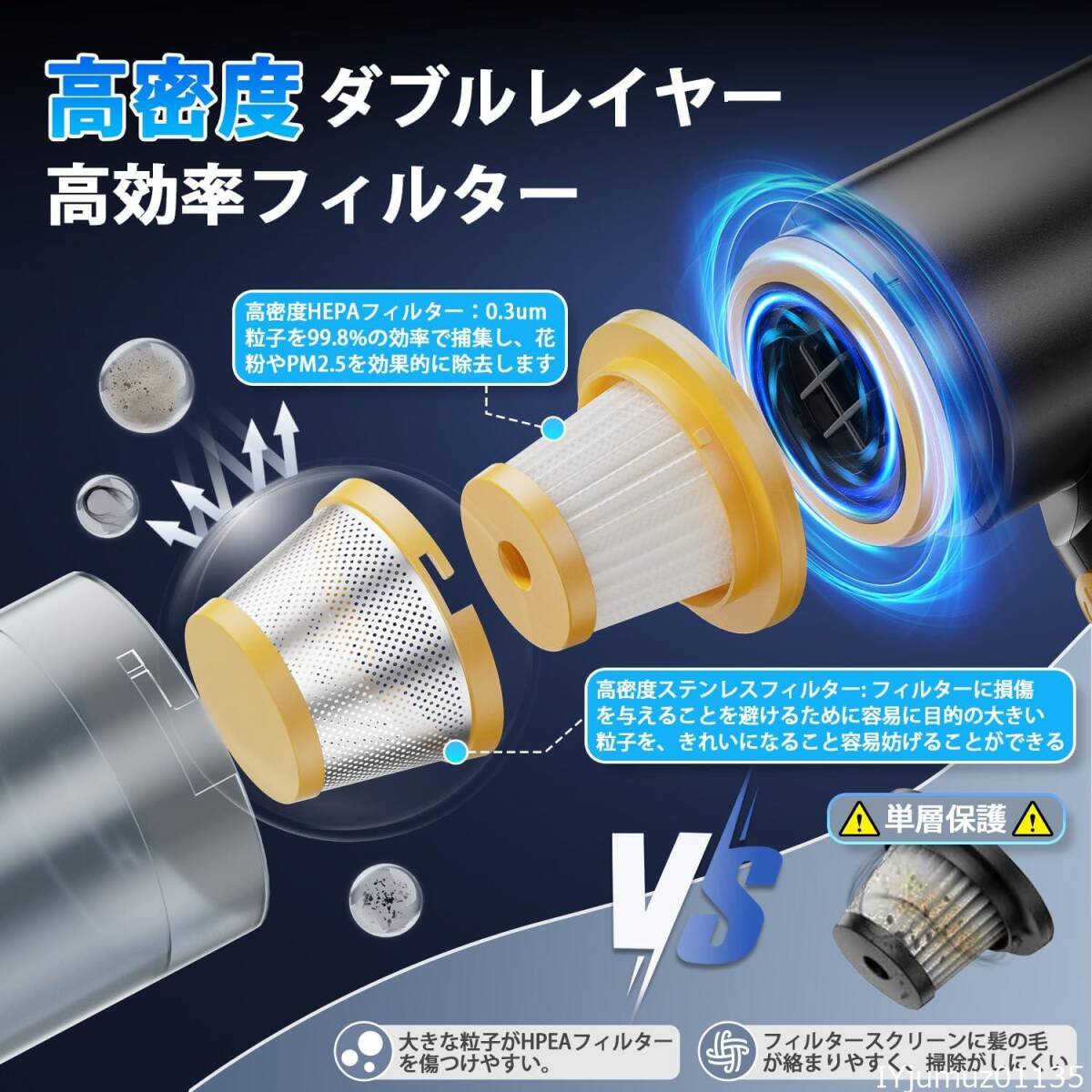 【メタルフィルターとHEPAフィルター】ハンディ 掃除機 二重ろ過システムを採用しています。HEPAフィルターは非常に細かいホコリや不純物をろ過し、車内の掃除に非常に効果的です。 金属フィルターはより大きい雑誌の粒子をろ過し、コードレスハンディフーバーの損傷を防ぎます。 また、HEPAフィルターは簡単に取り外し可能で、水洗いして乾燥させるだけで再利用できます。