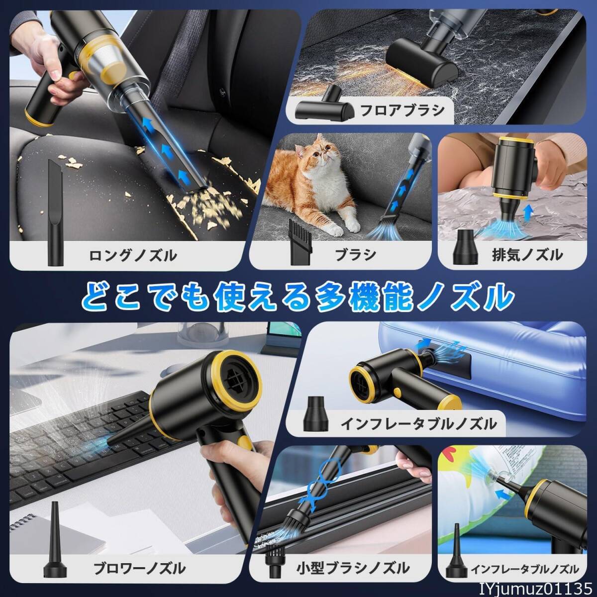 【新登場】 ハンディクリーナー コードレス 強力吸引力【吹き飛ぶ/吸い込む/空気入れ/空気抜き】 多機能車用掃除機 Type-C