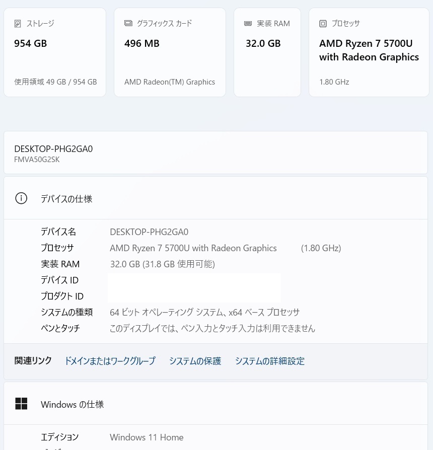 CPU:AMD Ryzen 7 5700U モバイル・プロセッサー