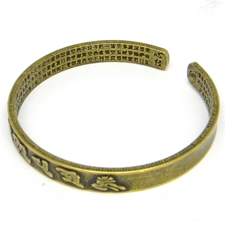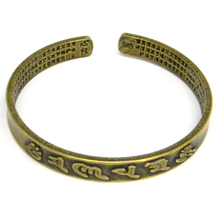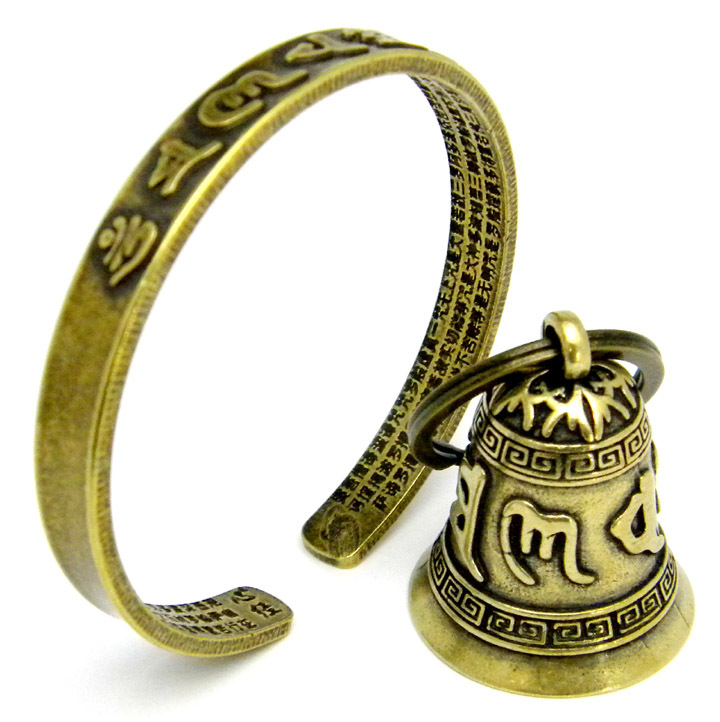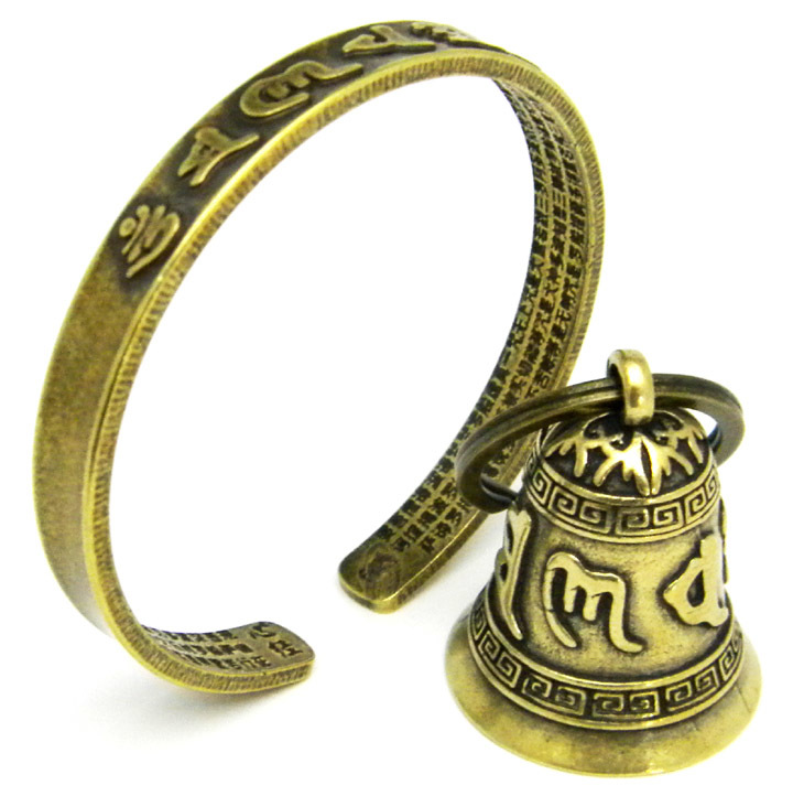 ★ 梵語 六字真言 般若心経 ★ バングル & ガーディアンベル ★ ヴィンテージ加工 厄除け お守り アンティーク調 [真鍮]【2個セット】