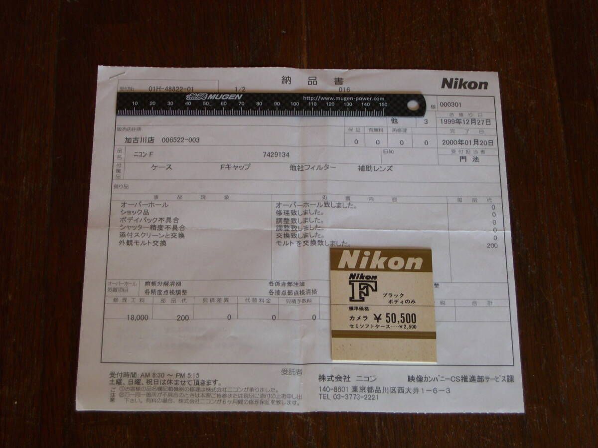 2000年にニコンでボディ、レンズ共にオーバーホールを行いました。