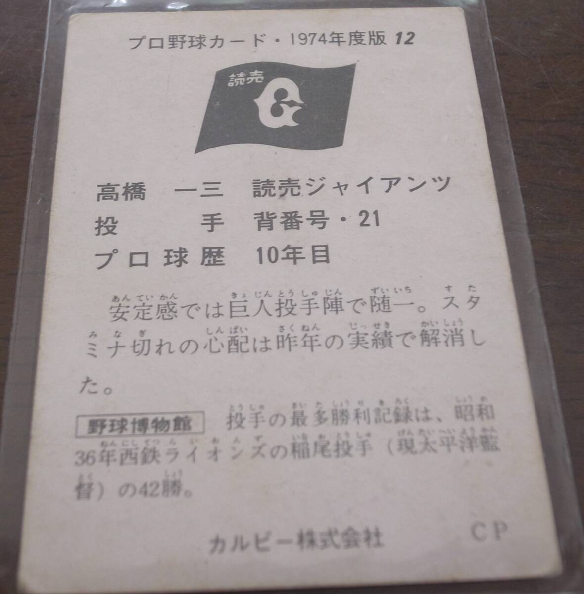 | ■カルビープロ野球カード1974年/No12高橋一三/巨人 | ||