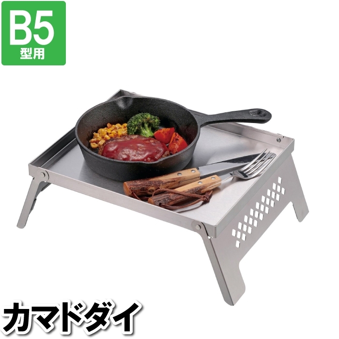 | かまど B5 ステンレス 軽量 軽い キャンプ バーベキュー BBQ 丈夫 さびにくい コンロ 焚き火台 折り畳む 折りたたみ 折りたためる アウトドア ミニテーブル 小さい 小型 1人用 一人用 ソロキャンプ 机 土台 |