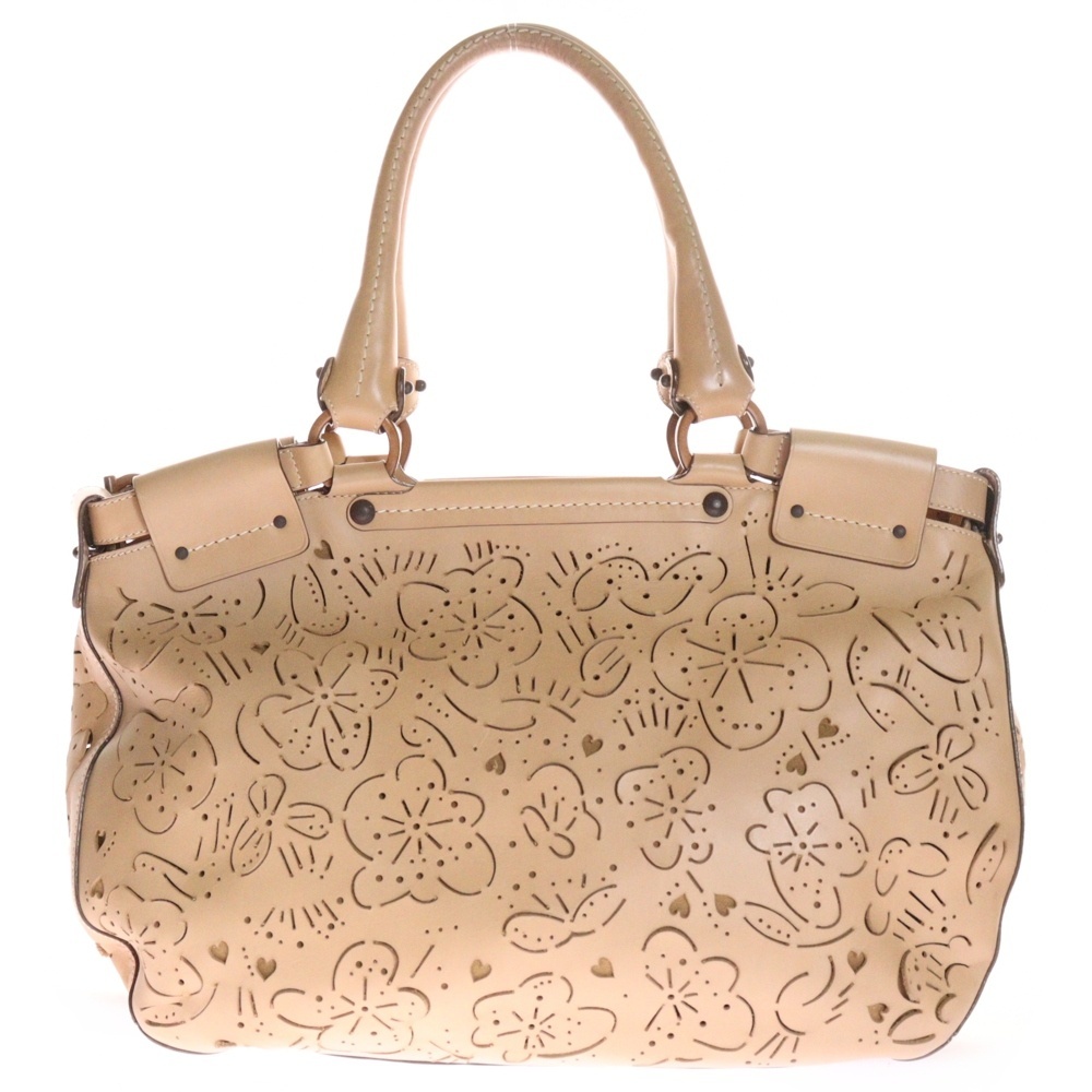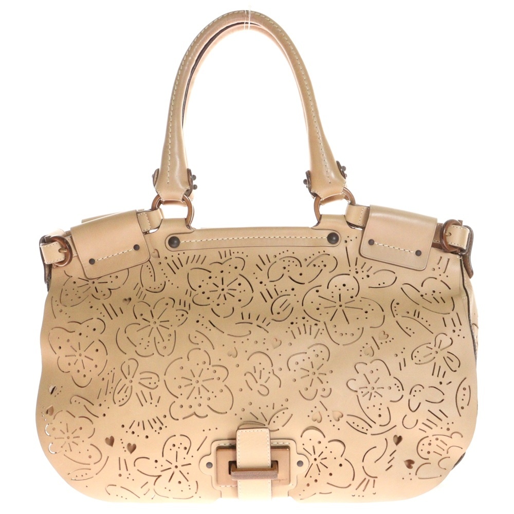 品名ハンドバッグ フラワーモチーフ ベージュ レザー トートバッグ