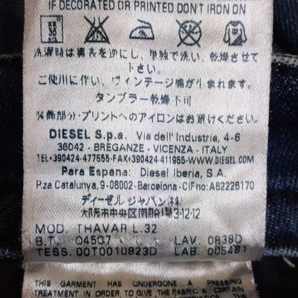 ディーゼル DIESEL ジーンズ/デニムパンツ サイズ27 THAVAR ネイビー メンズ フルレングス/ダメージ加工 ボトムス